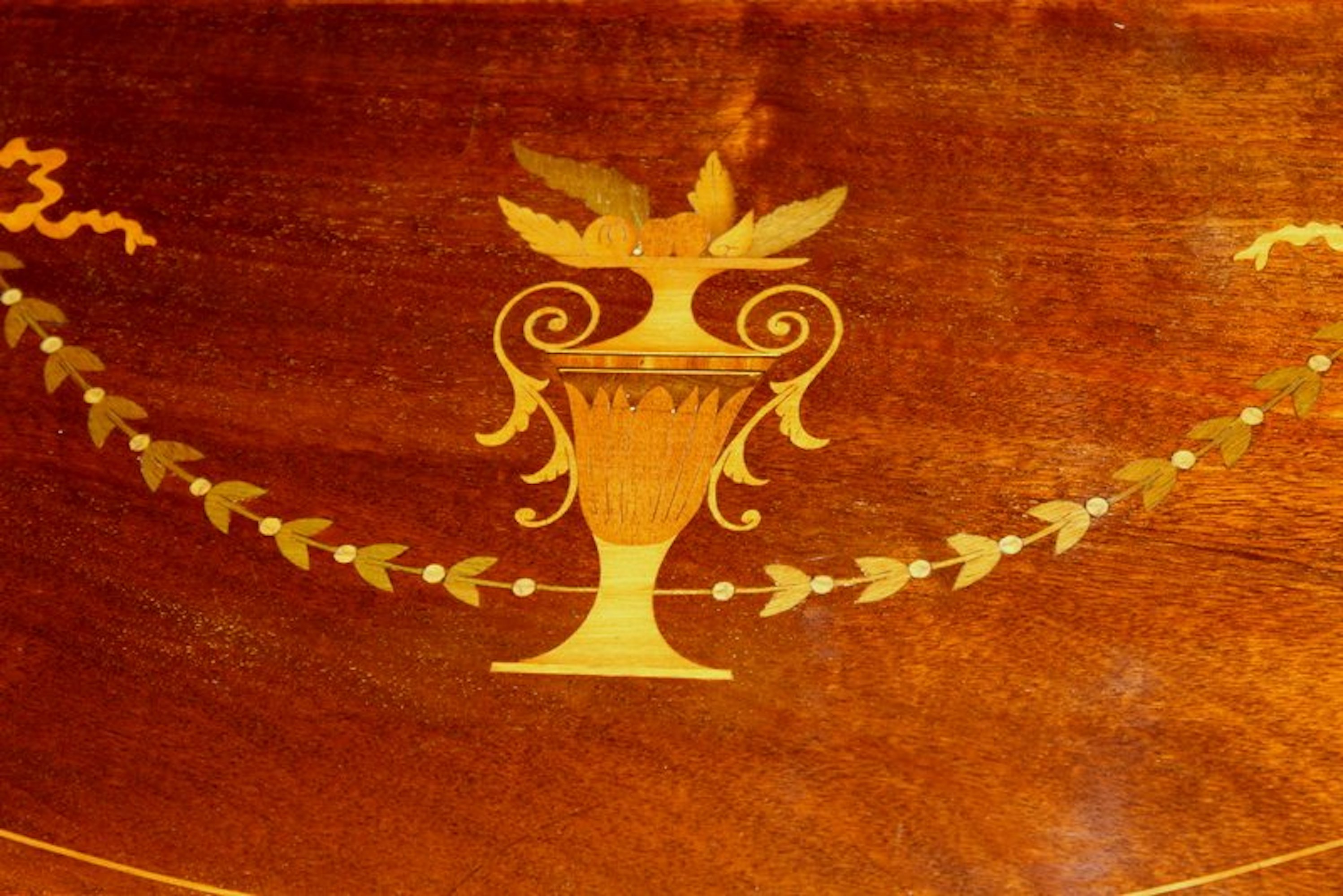 Fabulous Old English Marquetry Inlaid Mahogany “Adam” Style Occasional Table