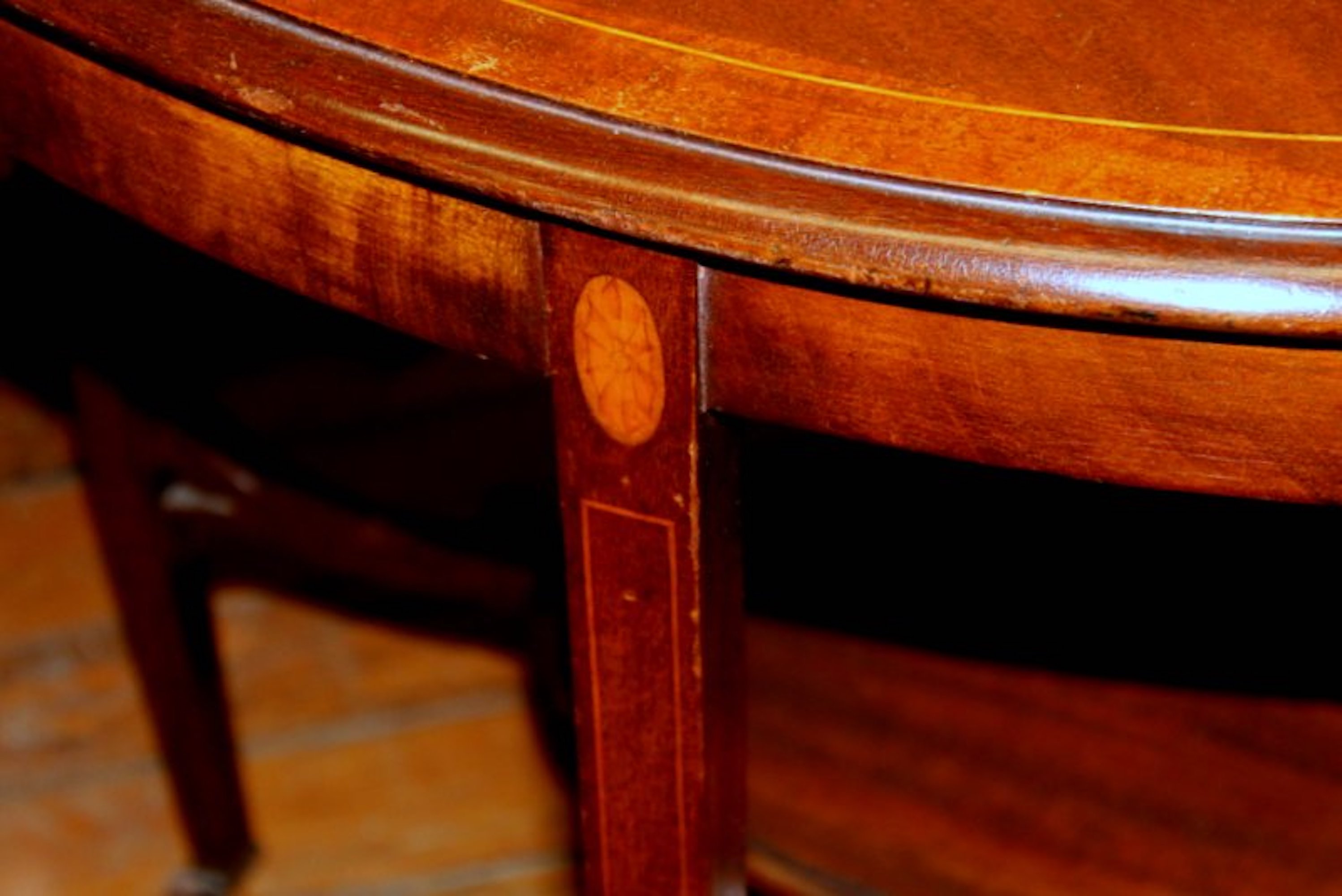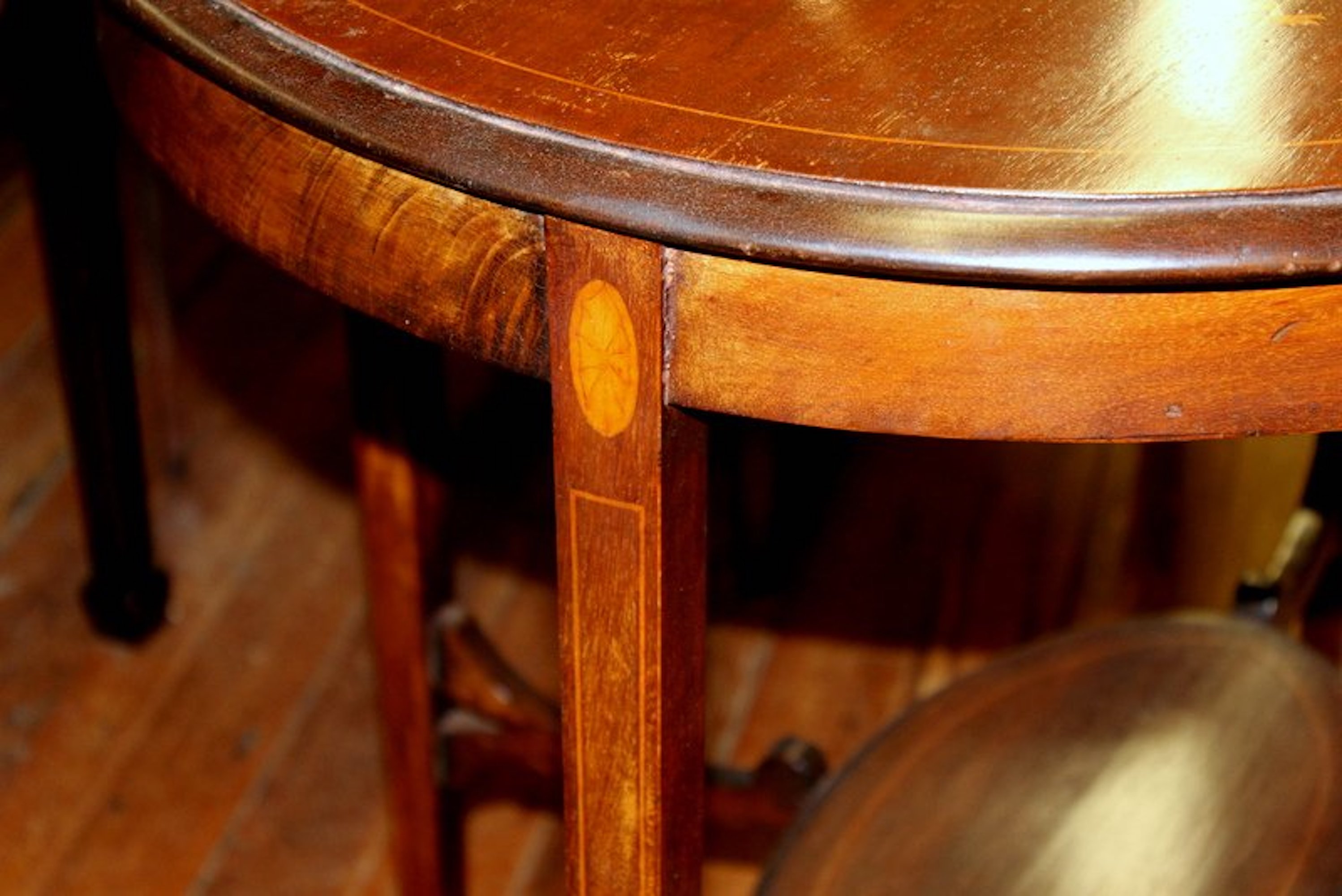 Old English Marquetry Inlaid Mahogany "Adam" Style Occasional Table - Image 8