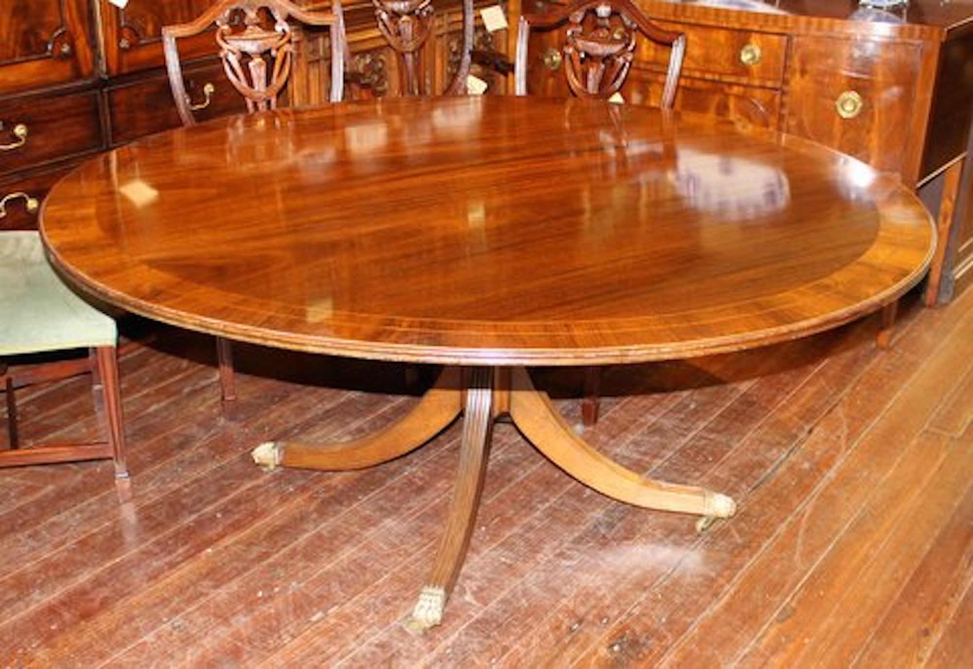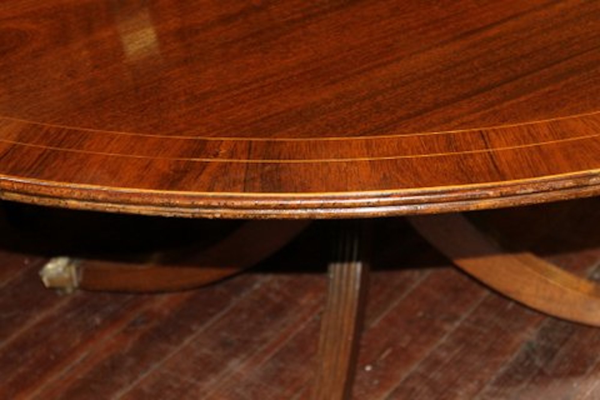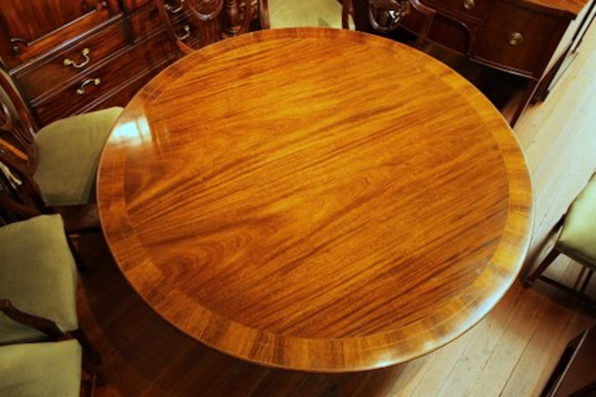 Exceptional Quality Old English Sheraton Style Rosewood Cross-banded Figured Solid Mahogany Circular Dining Table
