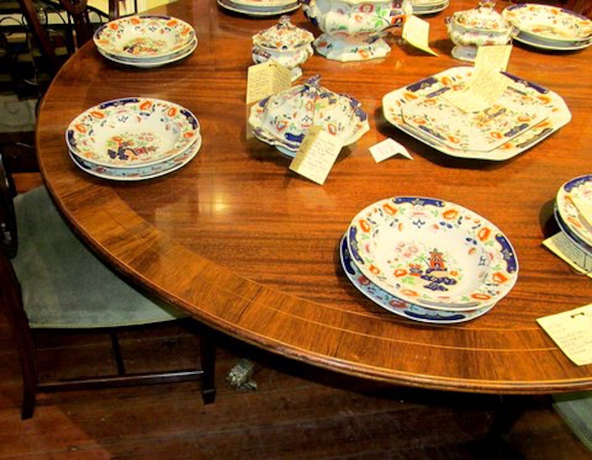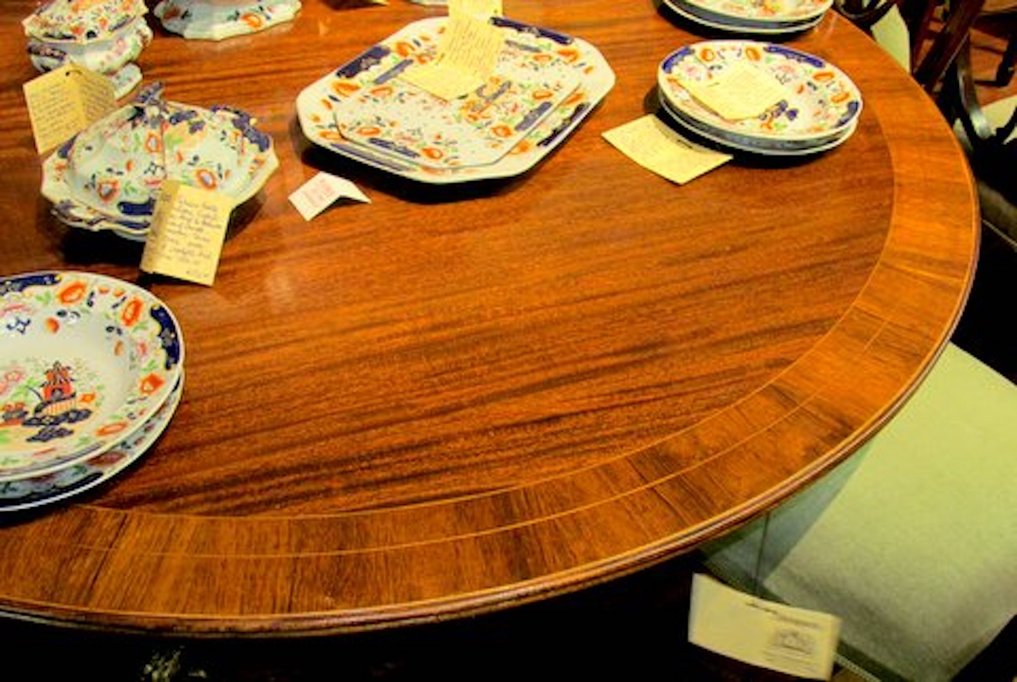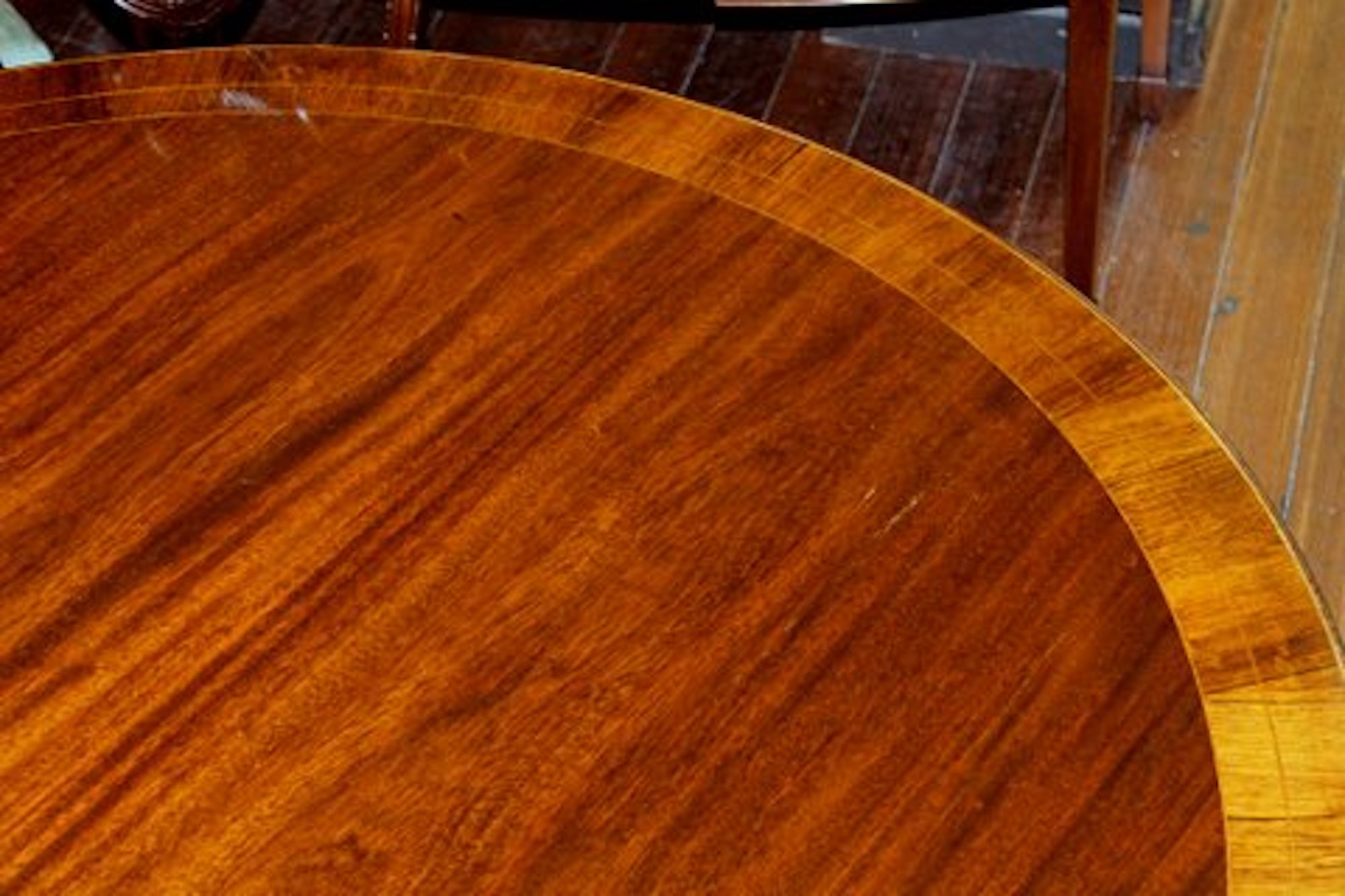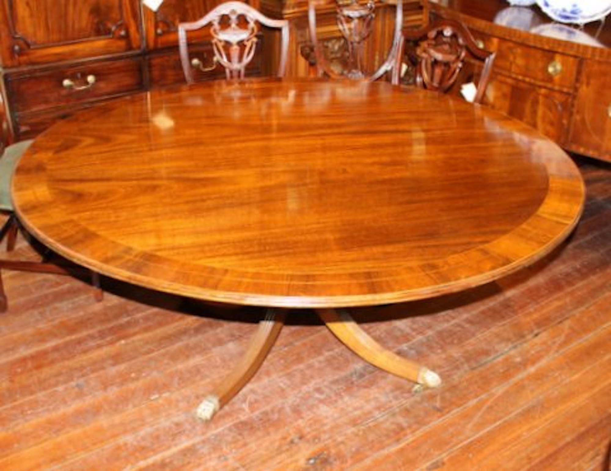 Exceptional Quality Old English Sheraton Style Rosewood Cross-banded Figured Solid Mahogany Circular Dining Table