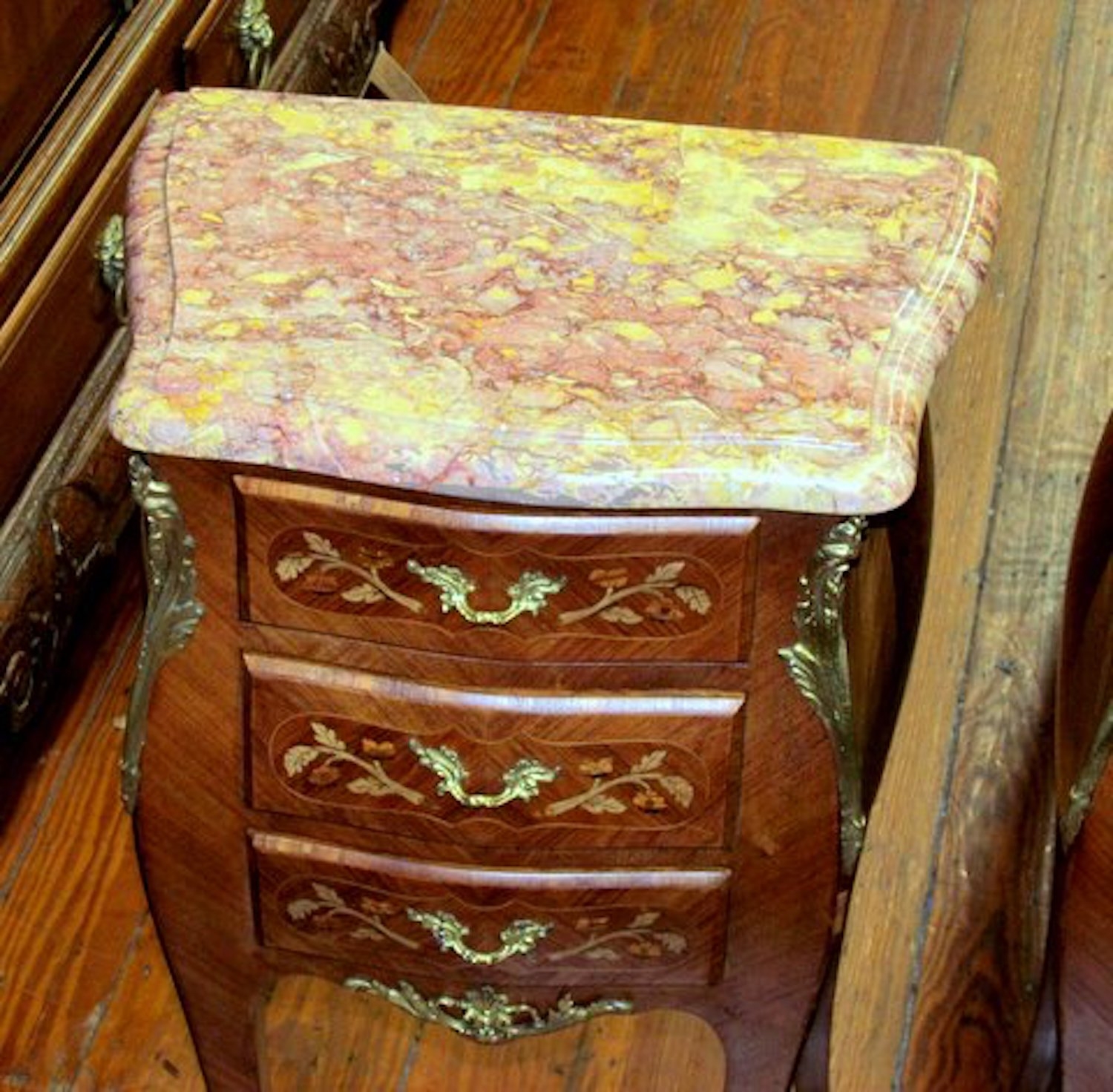You are here: Home / All Inventory / PAIR of Old French Marble Top 3- Drawer Bedside Tables