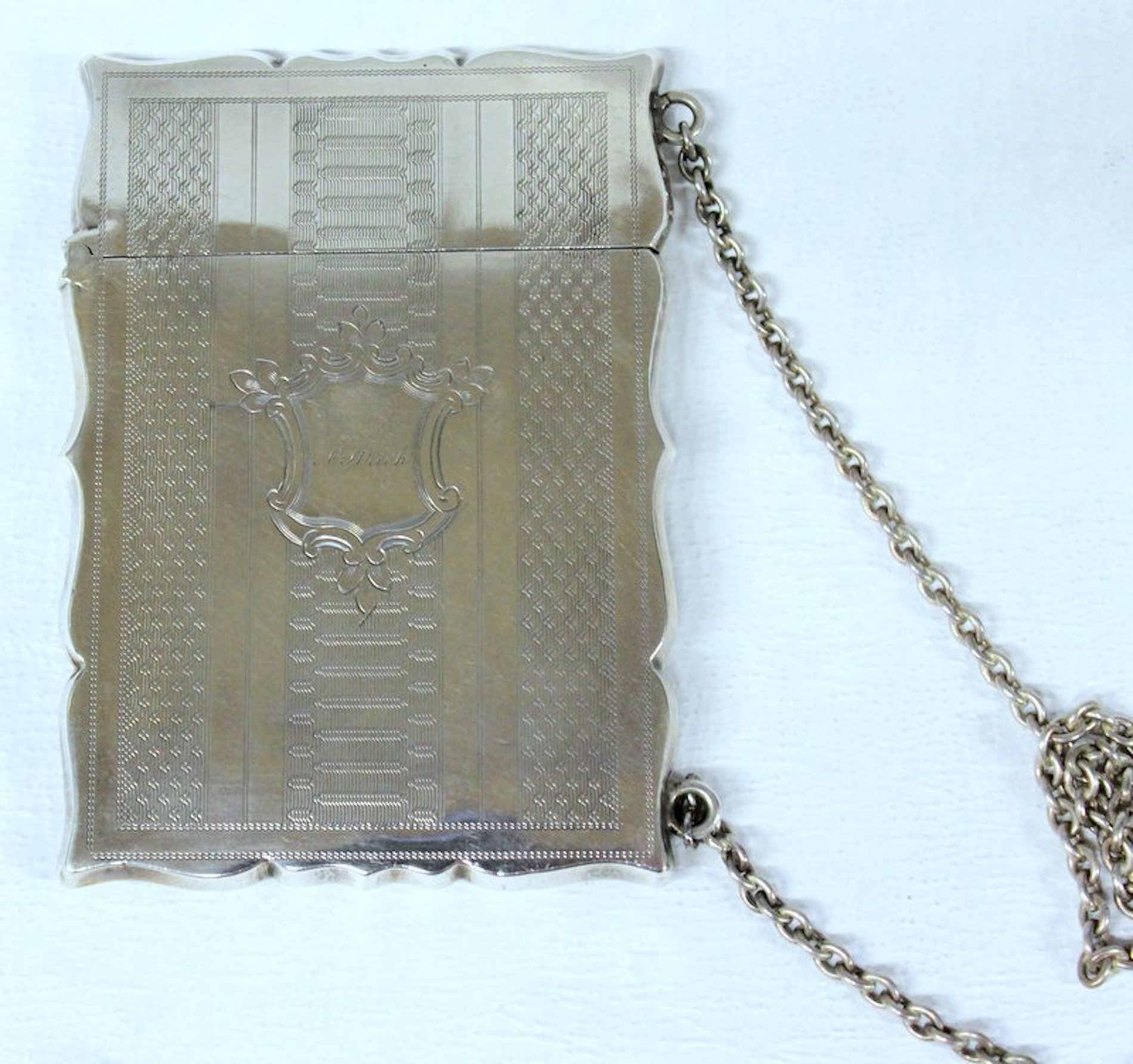 Antique American Coin Silver Hand Engraved Chatelaine Cord Case