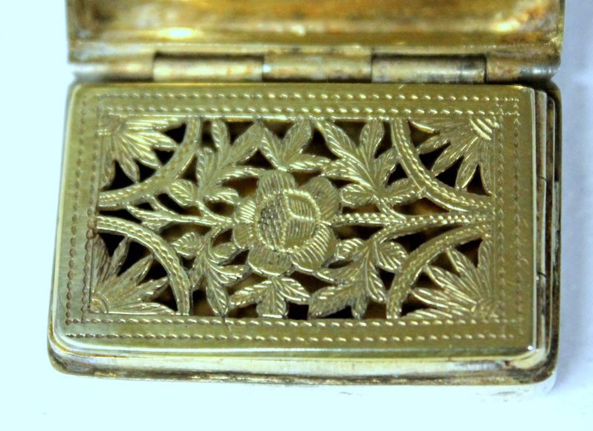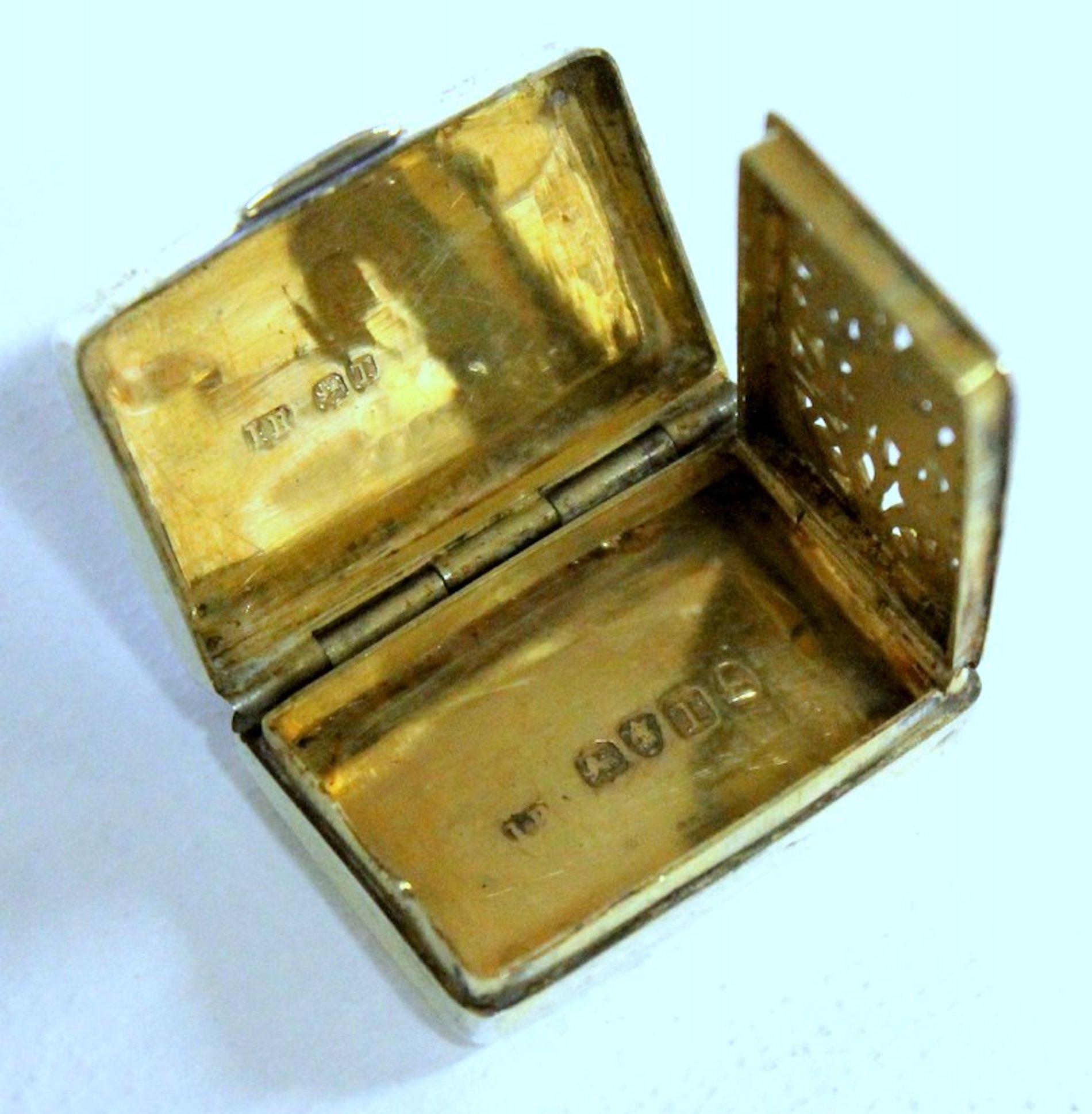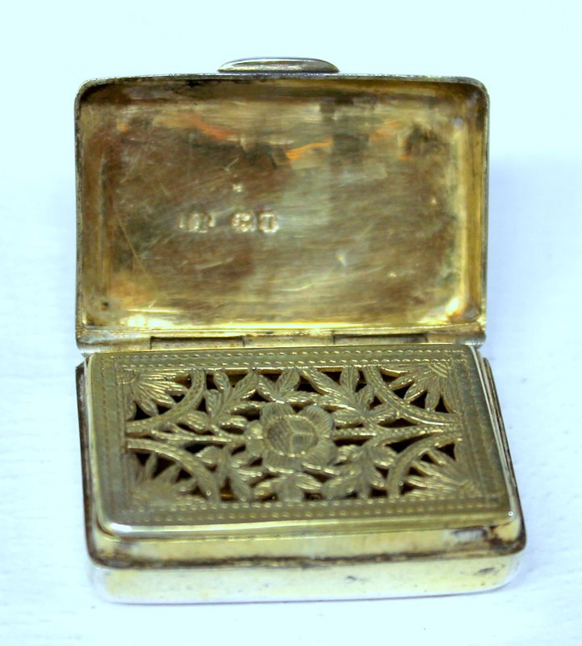 Antique English George III Sterling Vinaigrette with Pierced Vermeil Grille