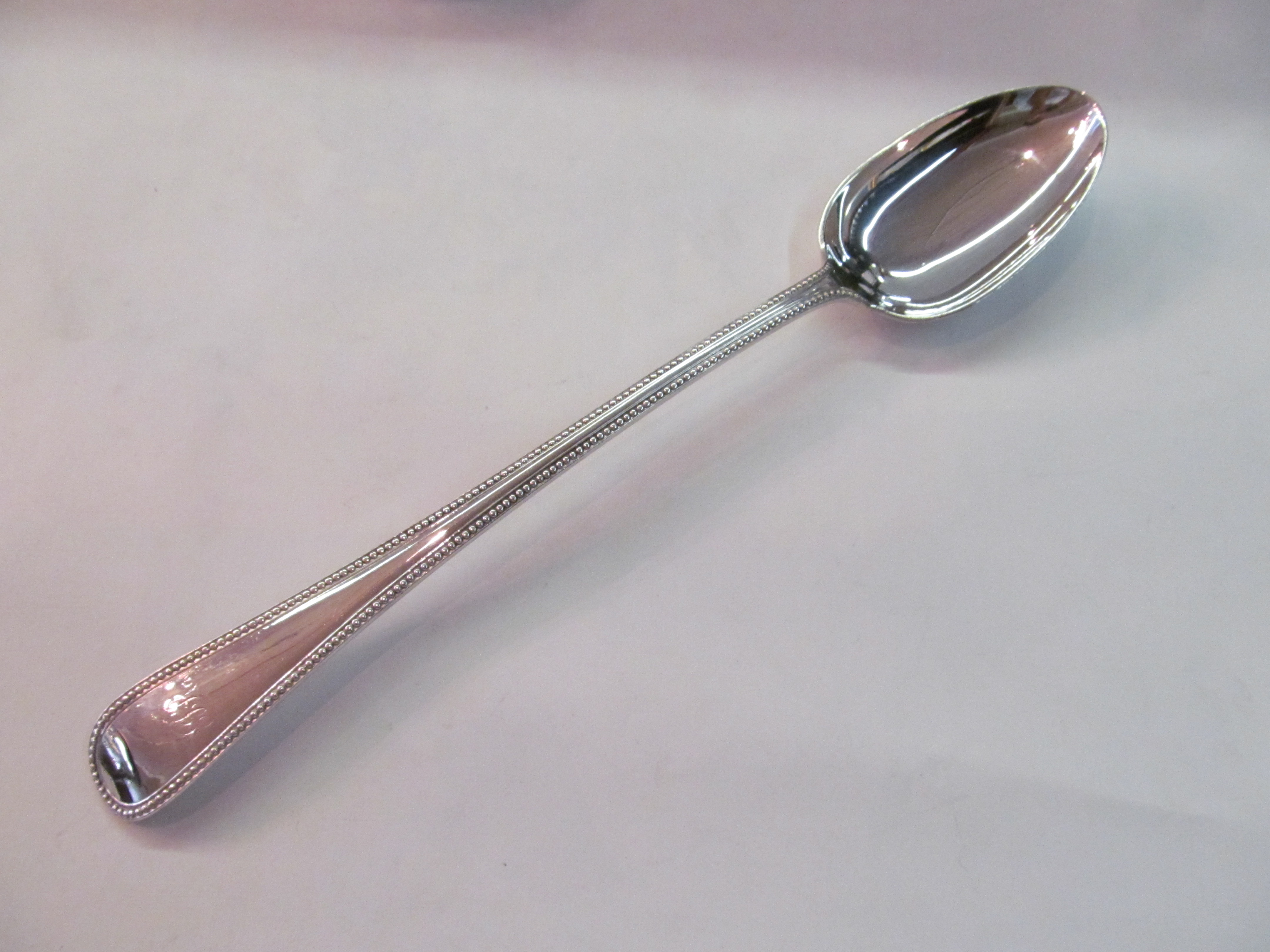 Antique English Silverplate "Beaded" Pattern Rice Spoon - Image 3