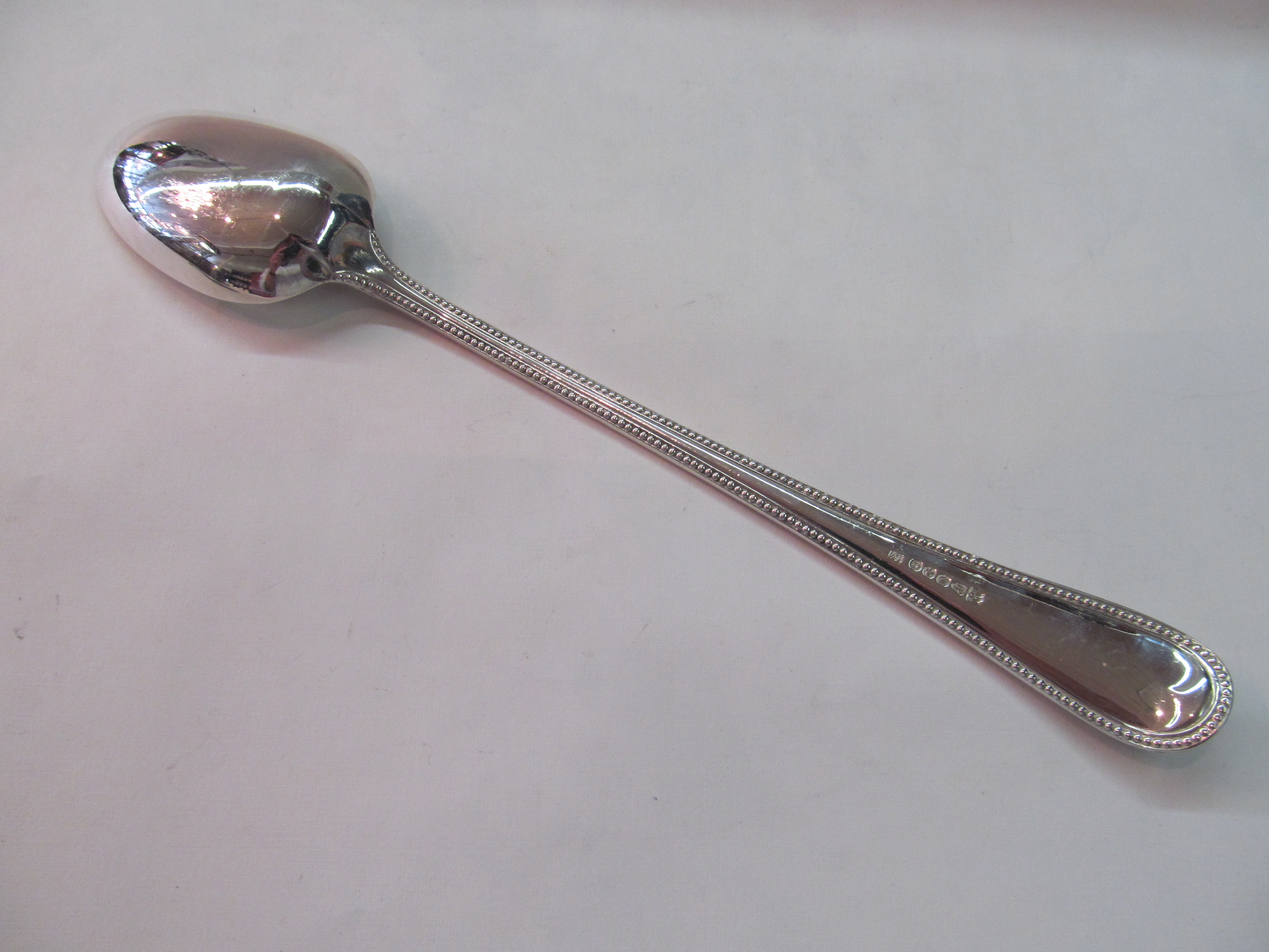 Antique English Silverplate "Beaded" Pattern Rice Spoon - Image 2