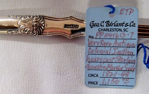 Very Rare Antique Colonial Indian heavy cast Sterling decorative Marrow Spoon