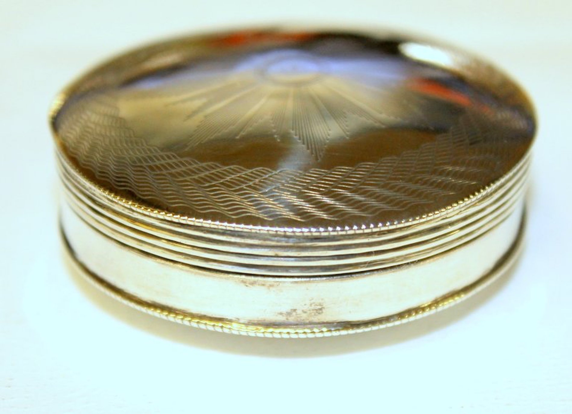 You are here: Home / All Inventory / Dutch Hand Engraved .833 Fine Silver Round Snuff Box