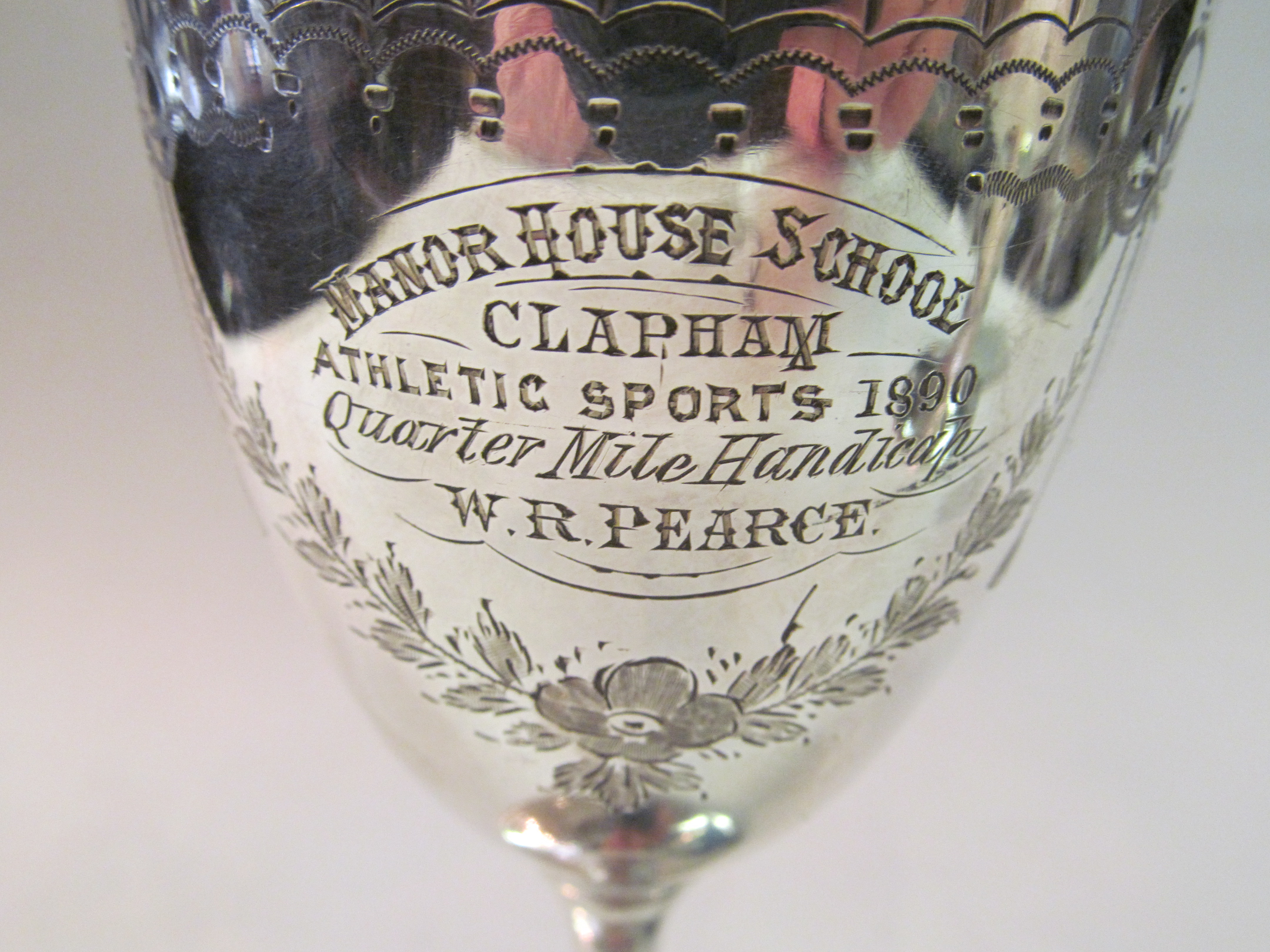 Superb Hand Engraved Antique English Silverplate Presentation Goblet. Circa 1875-85.