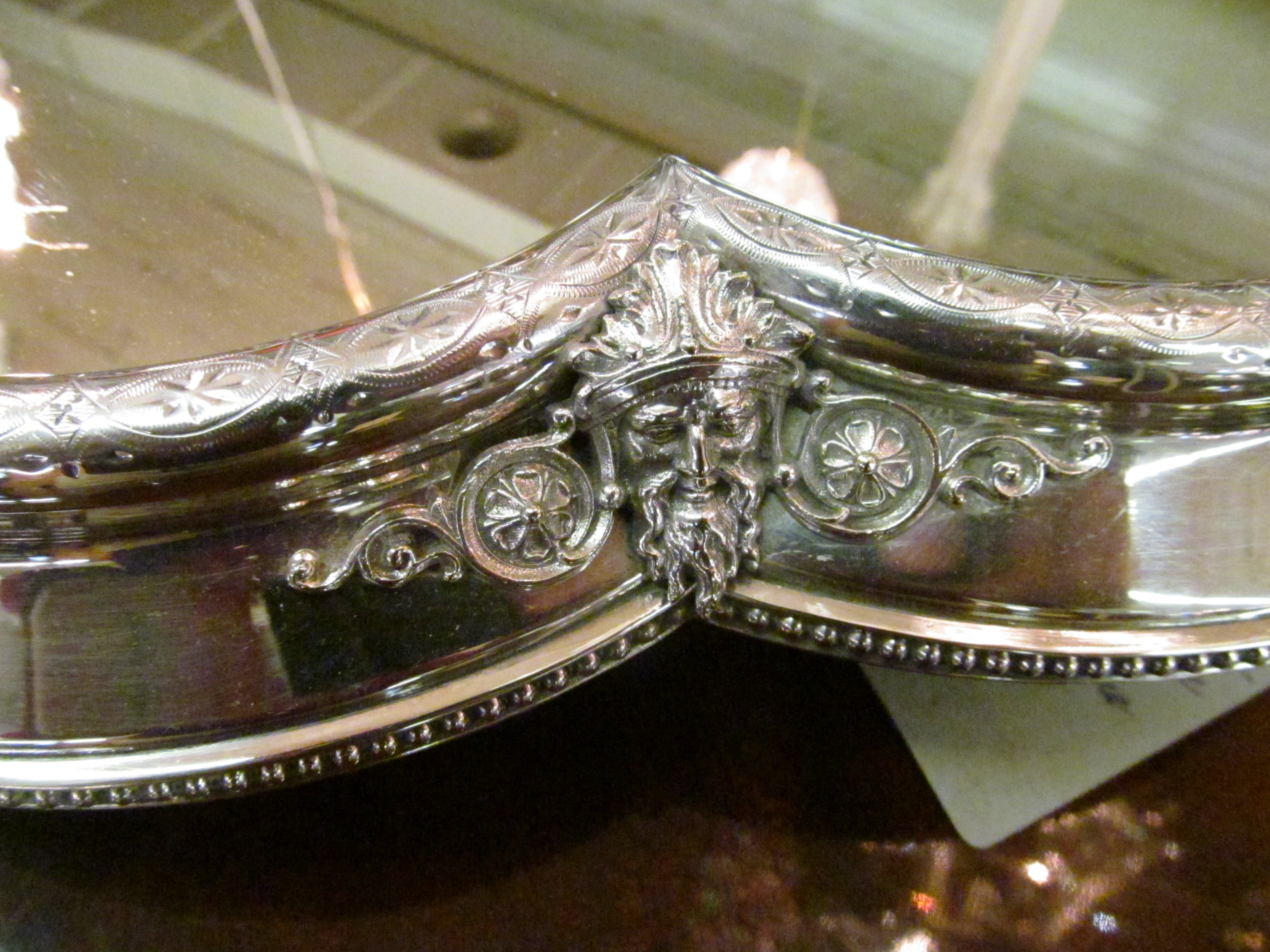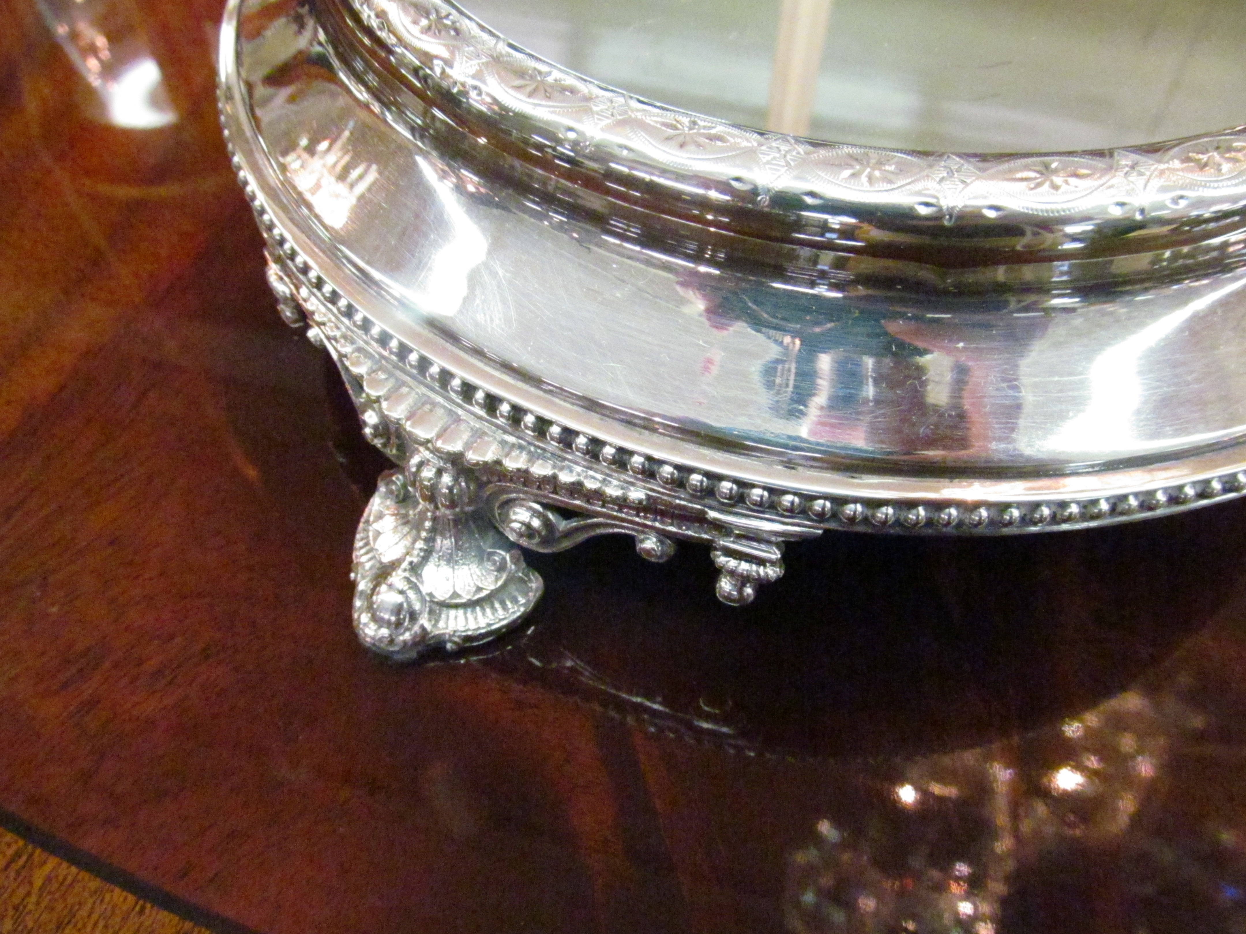 Rare Trefoil shape Hand Engraved Footed Mirror Plateau. Circa 1860-70.