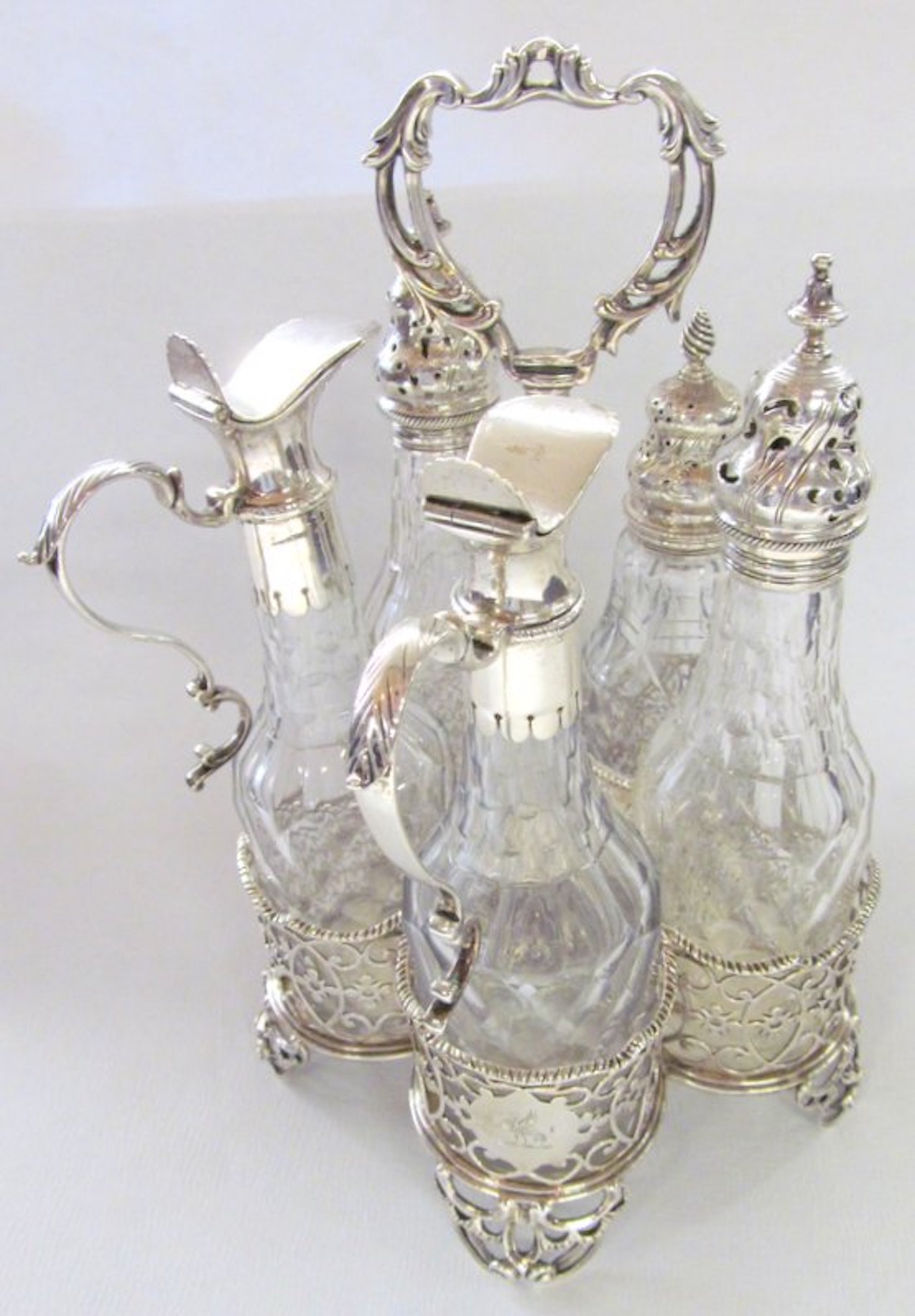 Geo. III Period Fabulous and Rare Fire Bottle Warwick Cruet Set