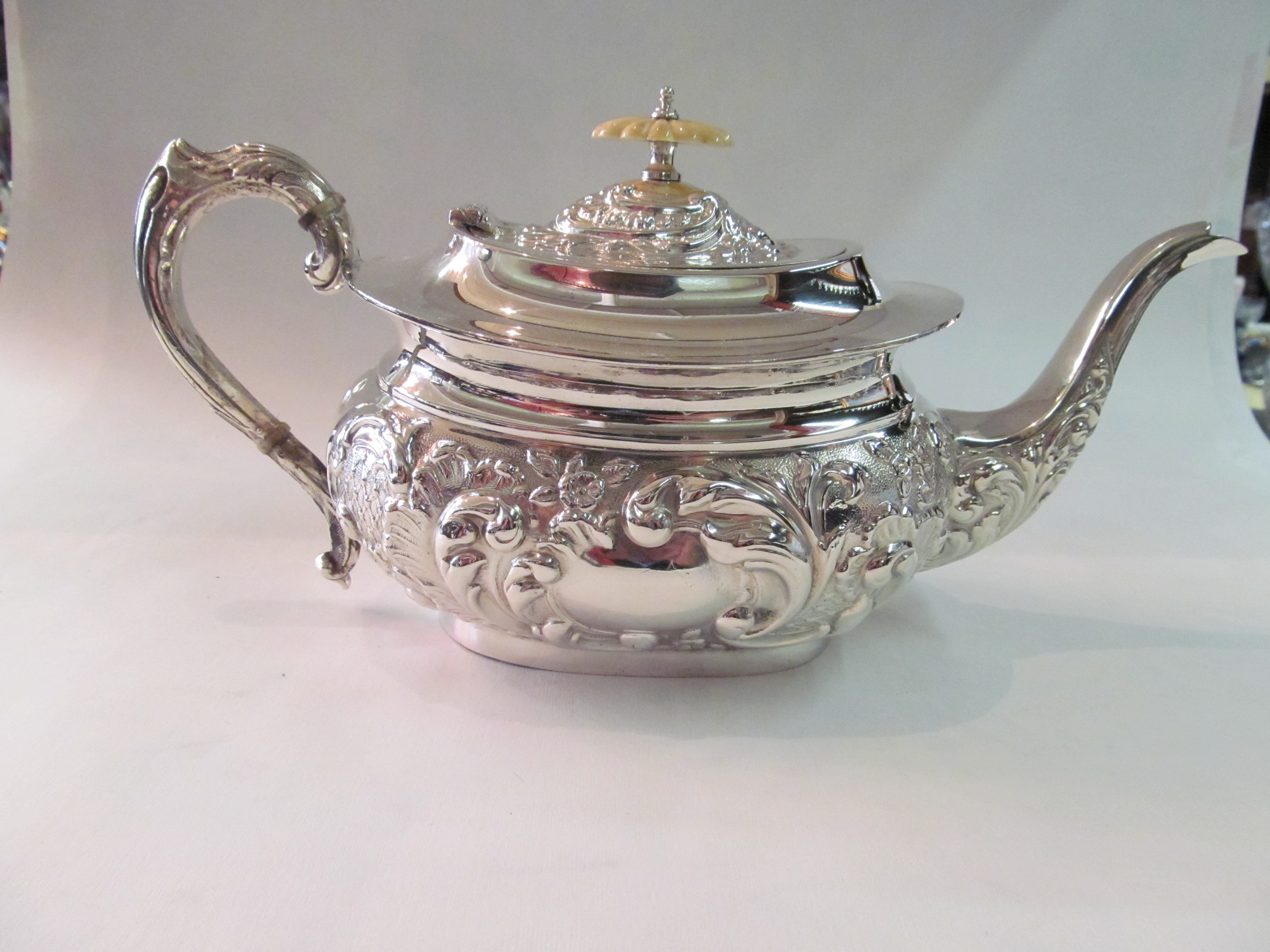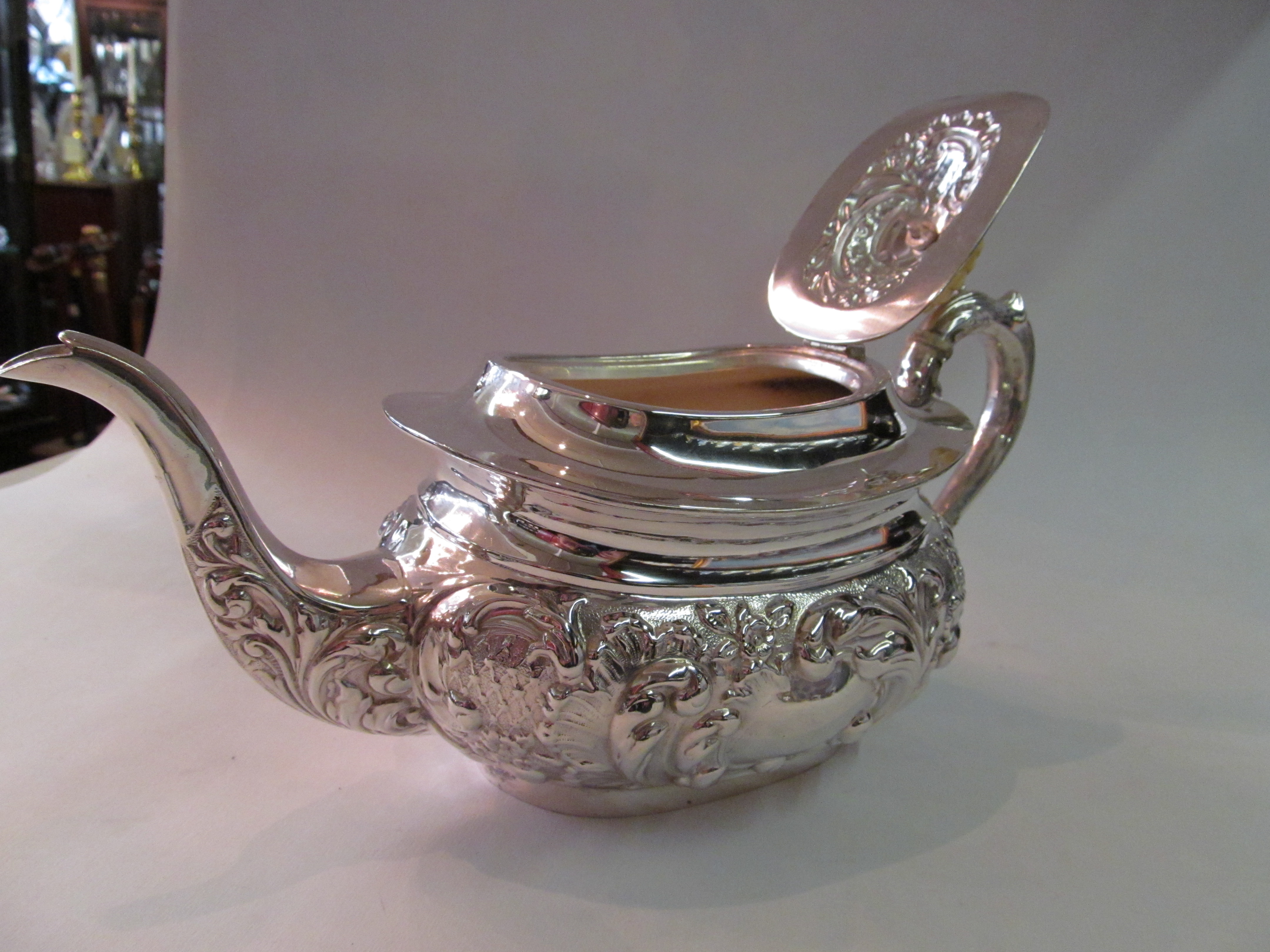 Fine Quality Antique English Silverplate Hand Chased Georgian Style Teapot.