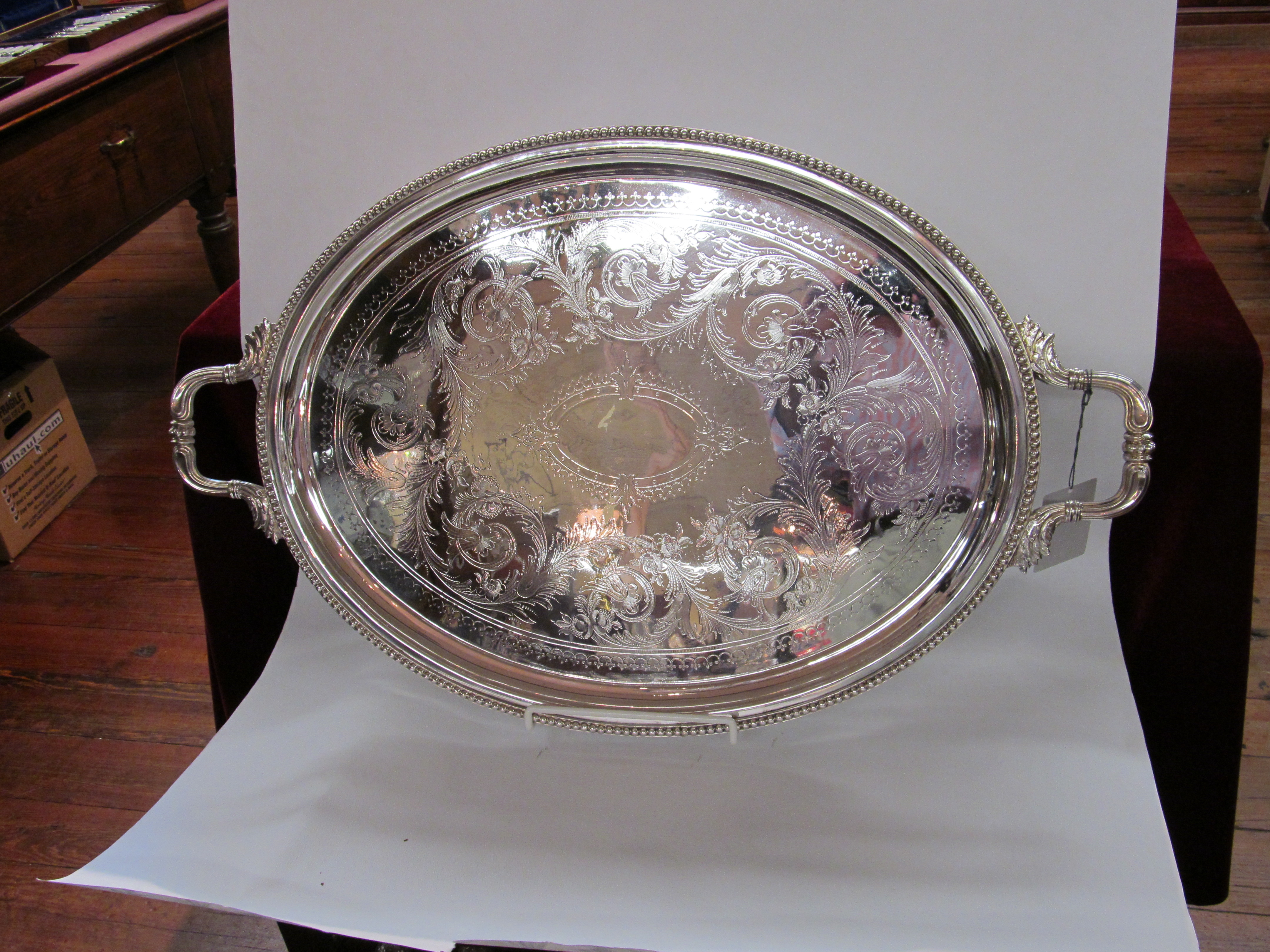 Magnificent Quality Hand Chased and Engraved Large Size Oval Tea Tray