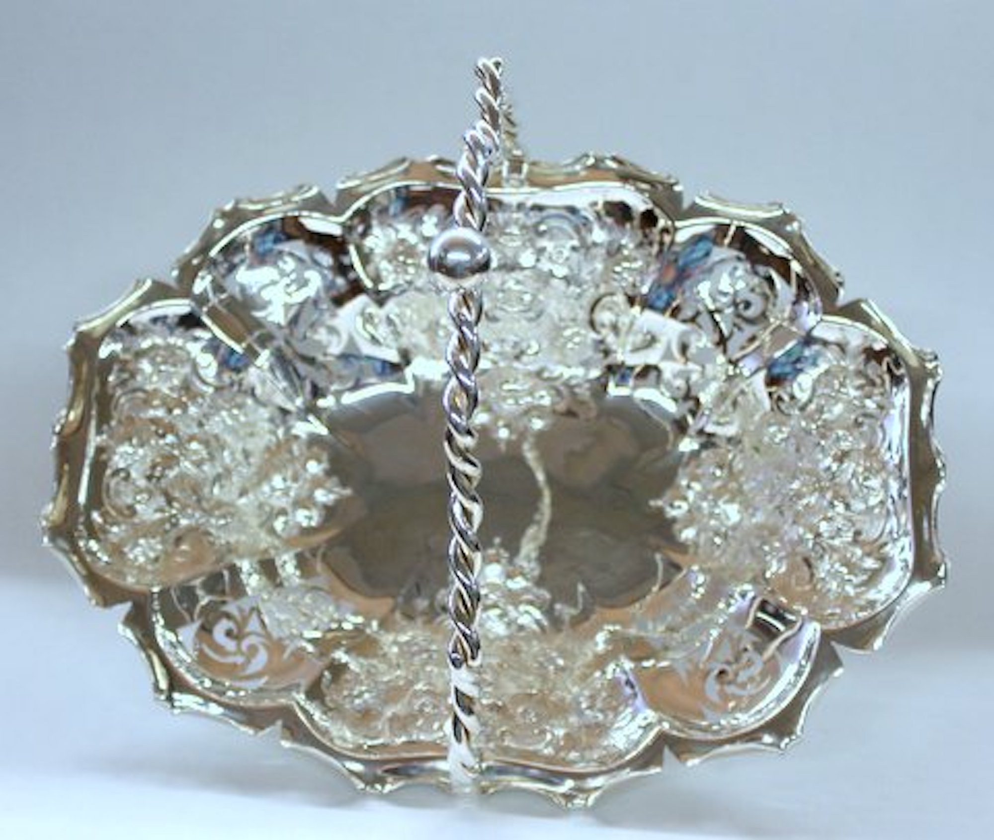 Exquisite Quality Hand Chased and Pierced Oblong Cake or Bread Basket