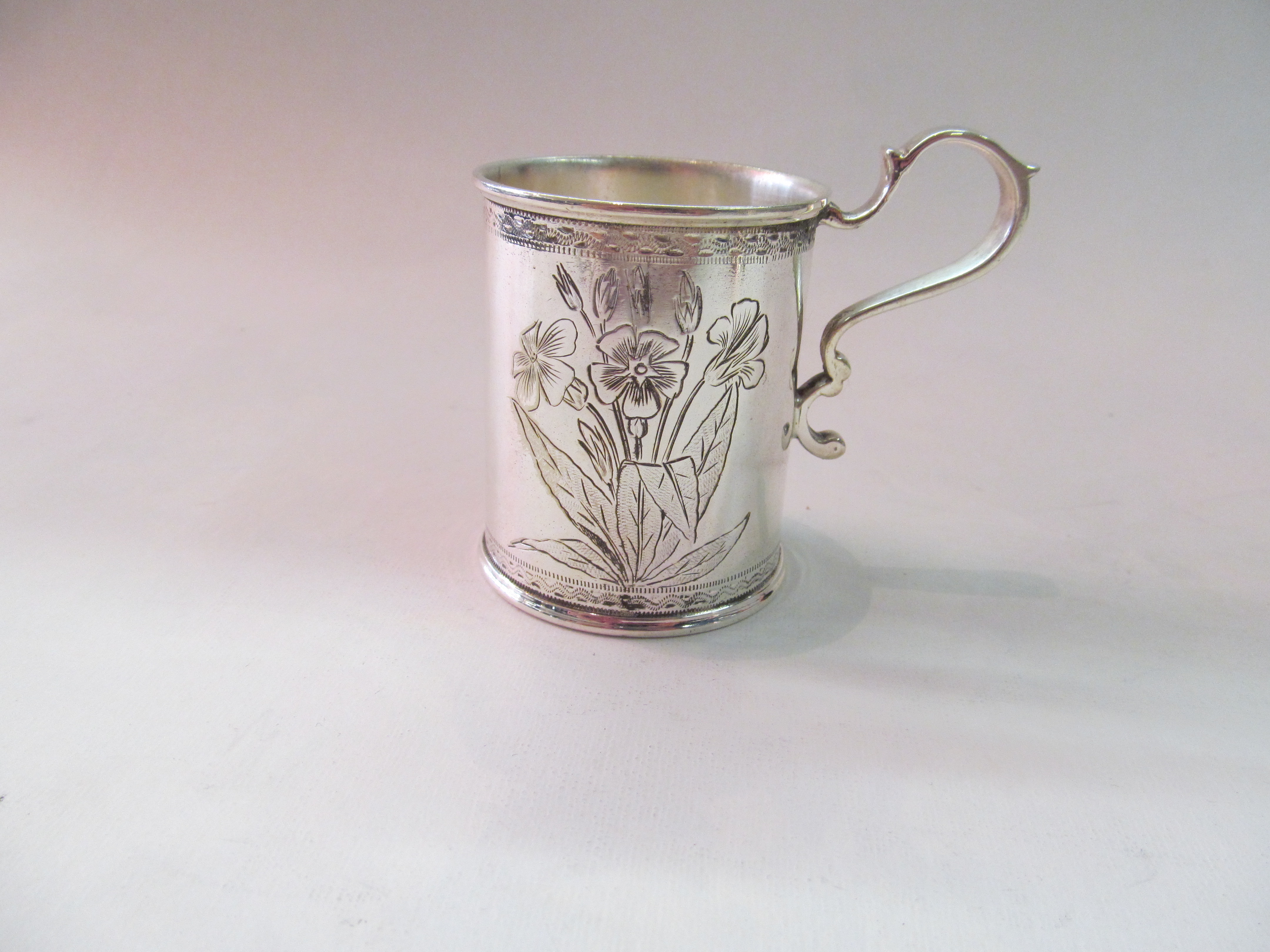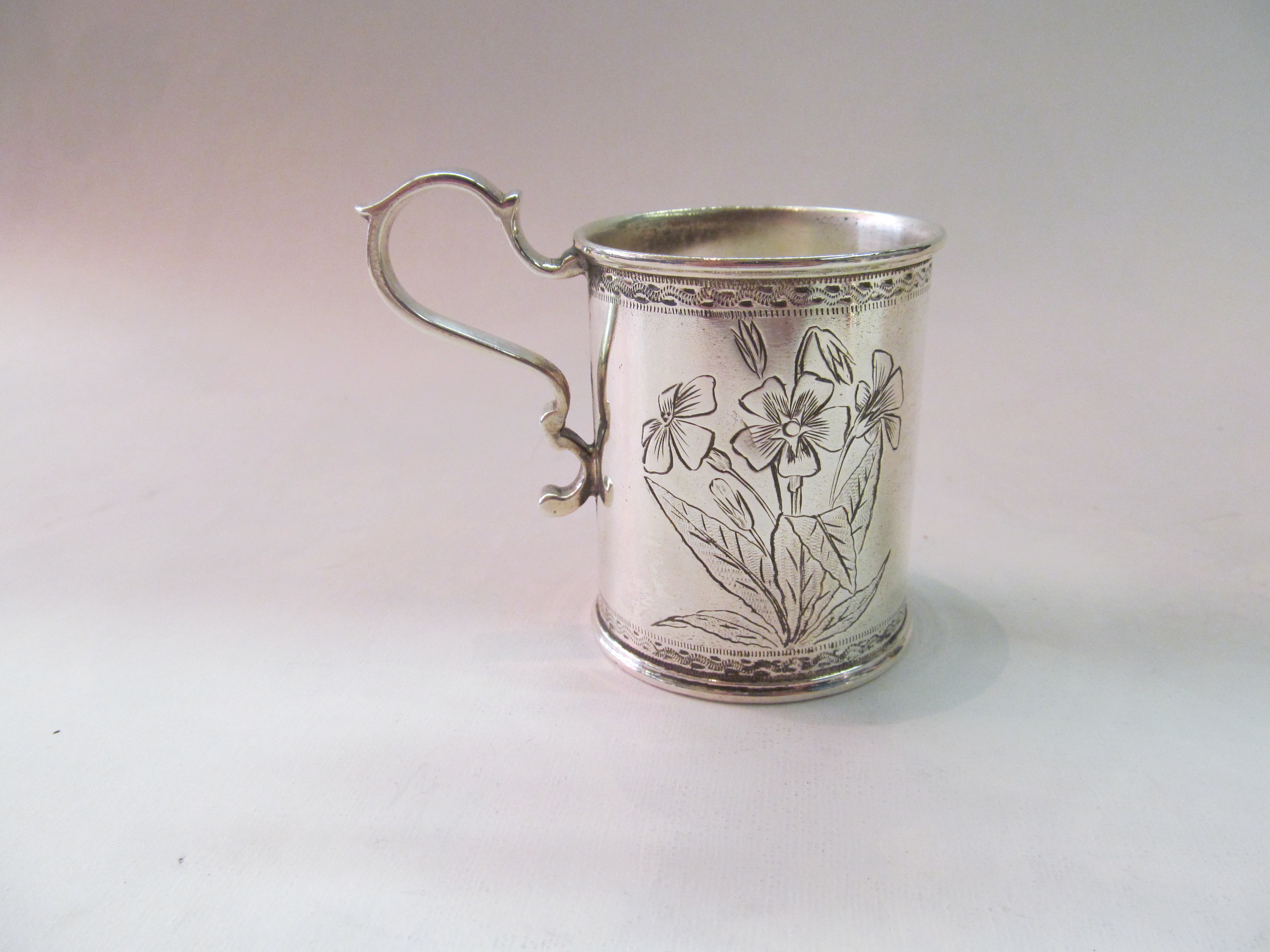 Fine Antique English Silverplate Hand Engraved Baby Cup.