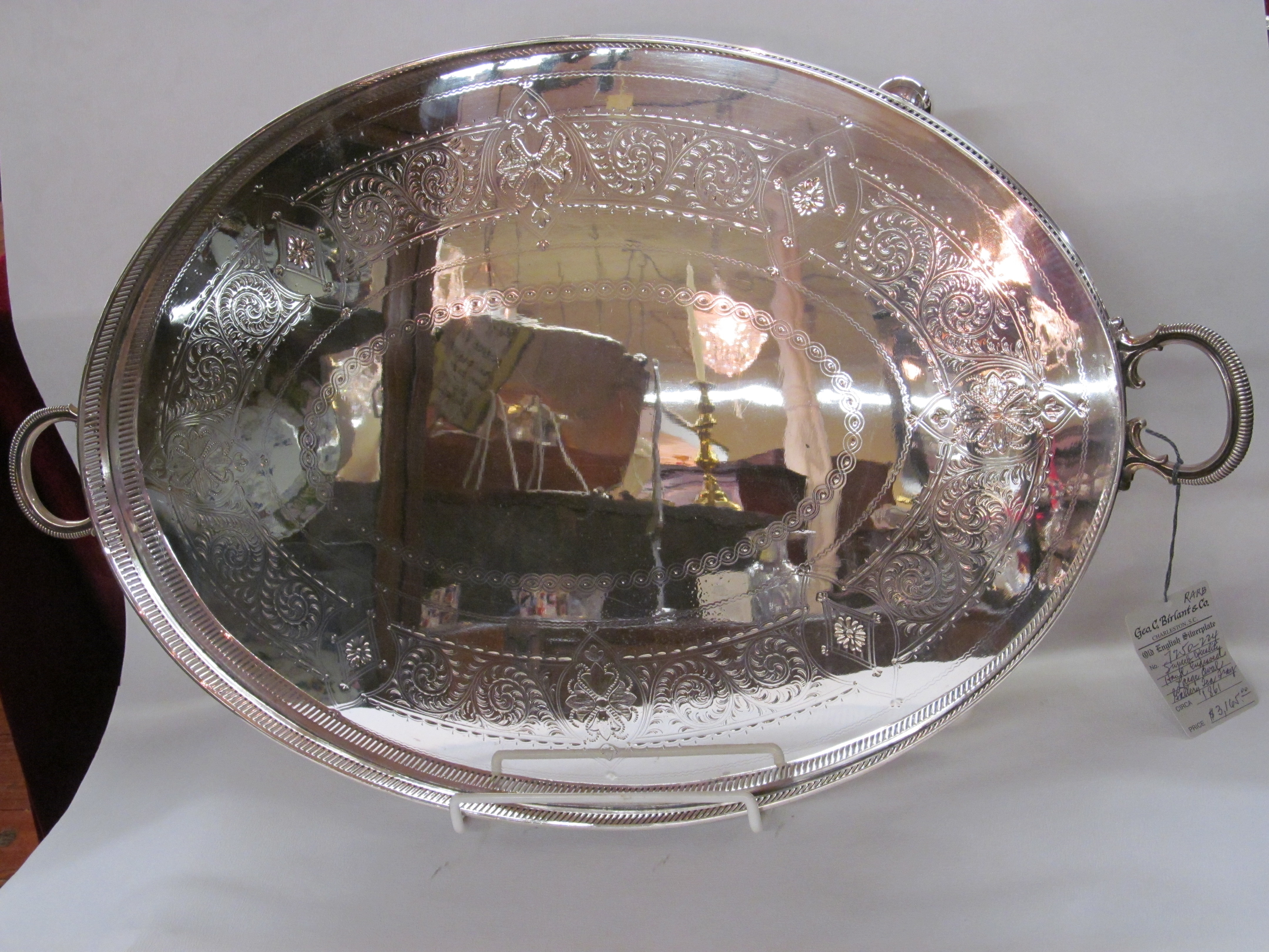 Superb Quality hand Engraved Large Oval Gallery Tea Tray