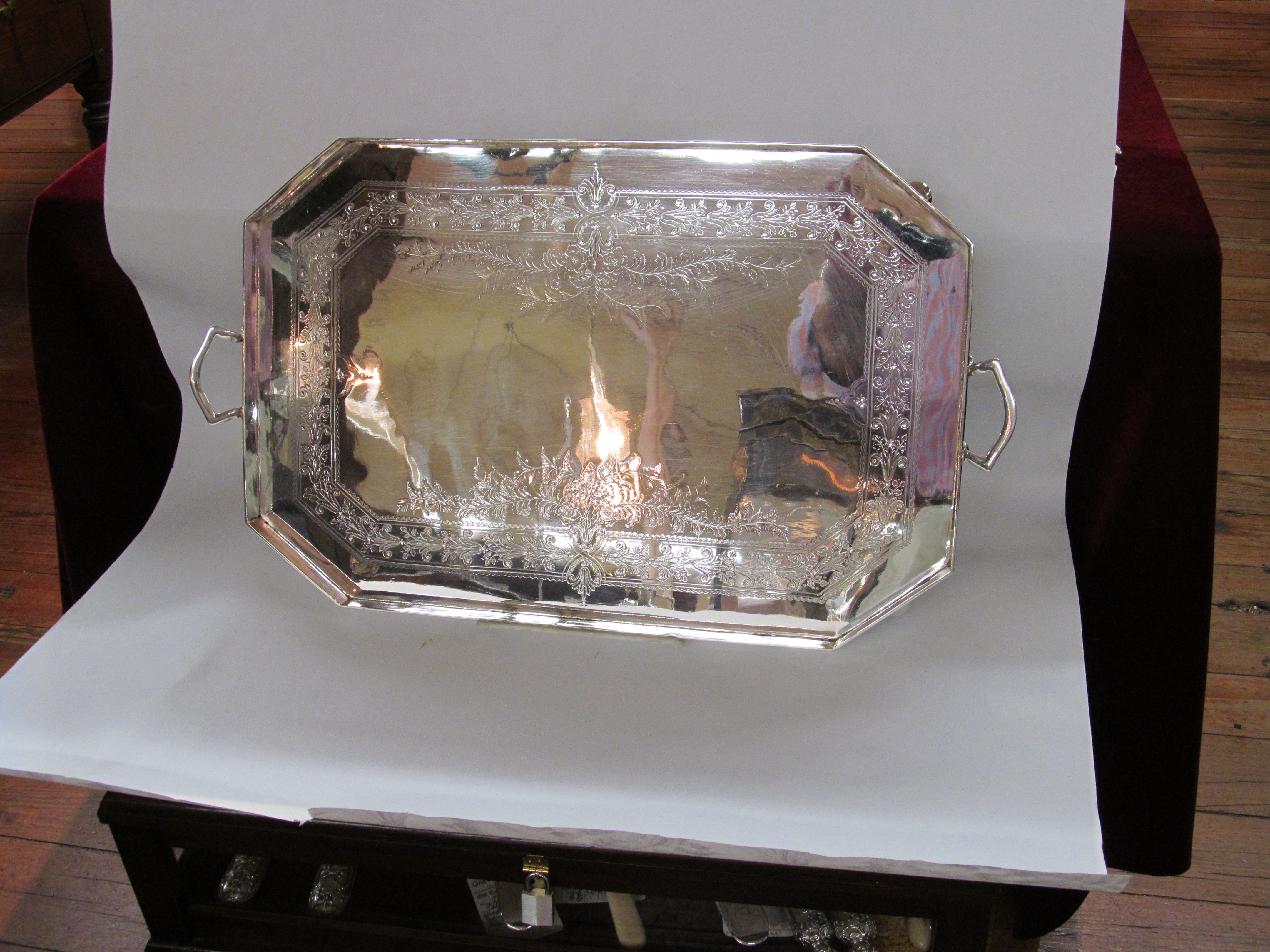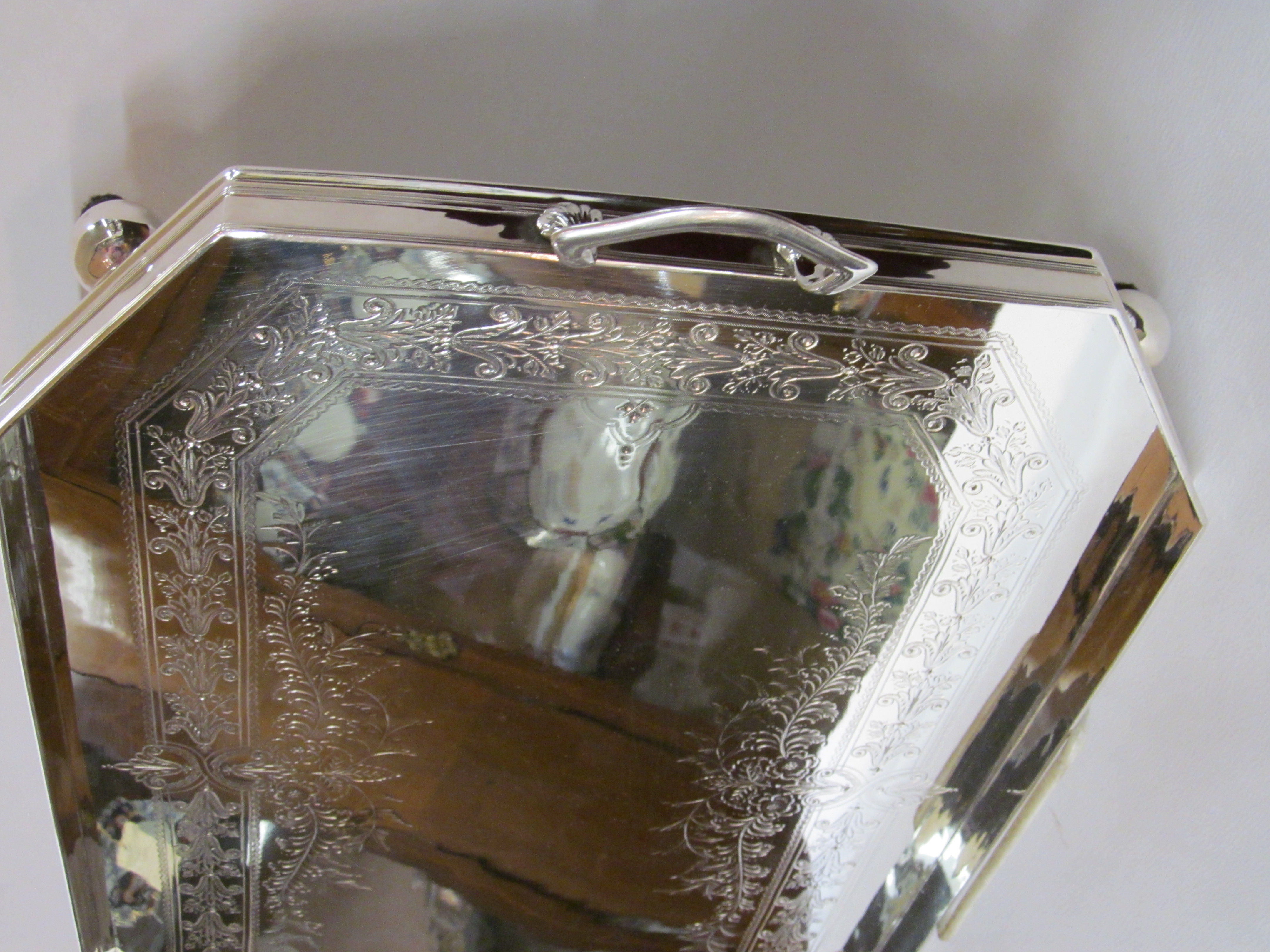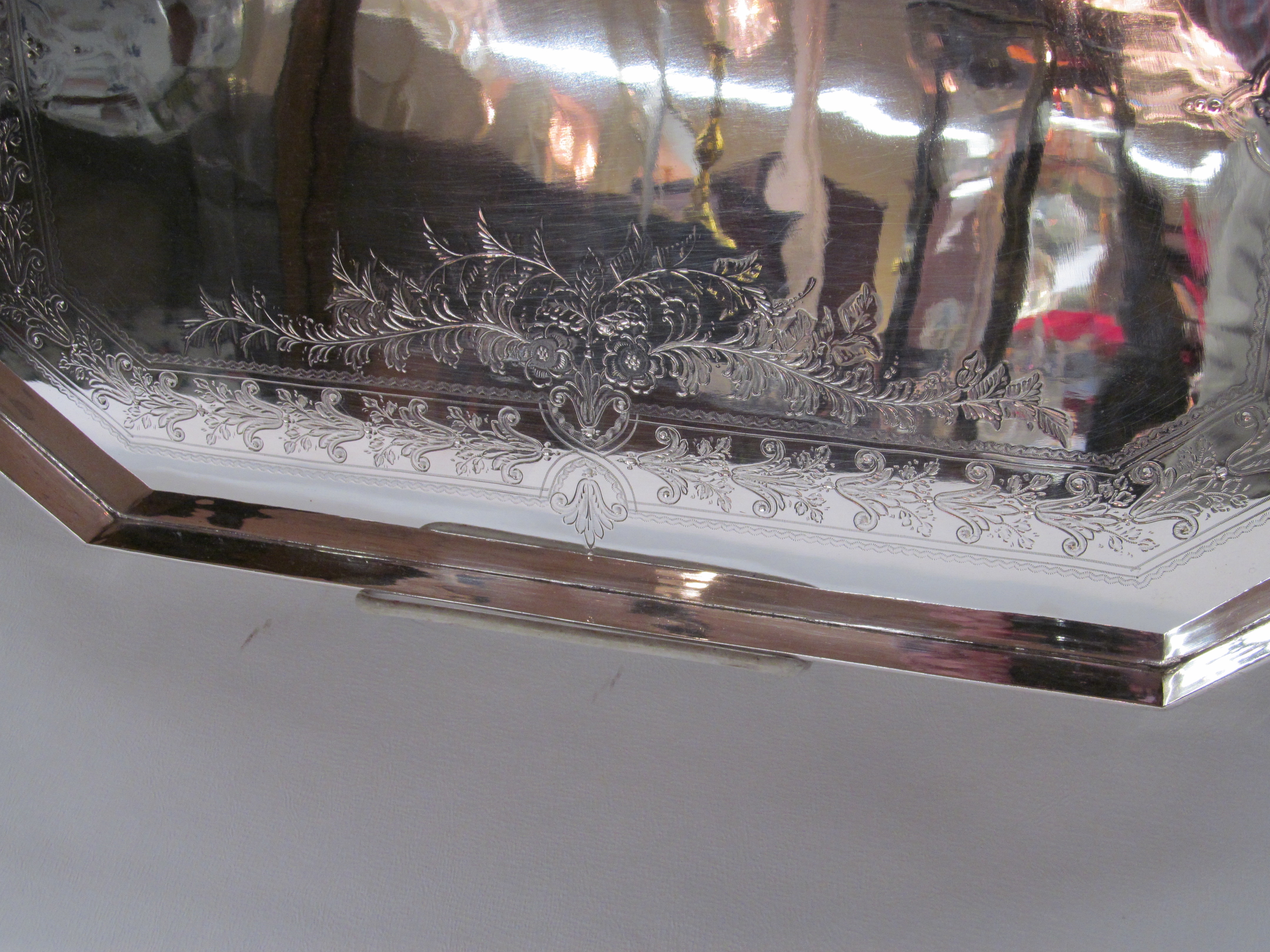 Fabulous Quality Hand Engraved Cut Corner Gallery Tea Tray