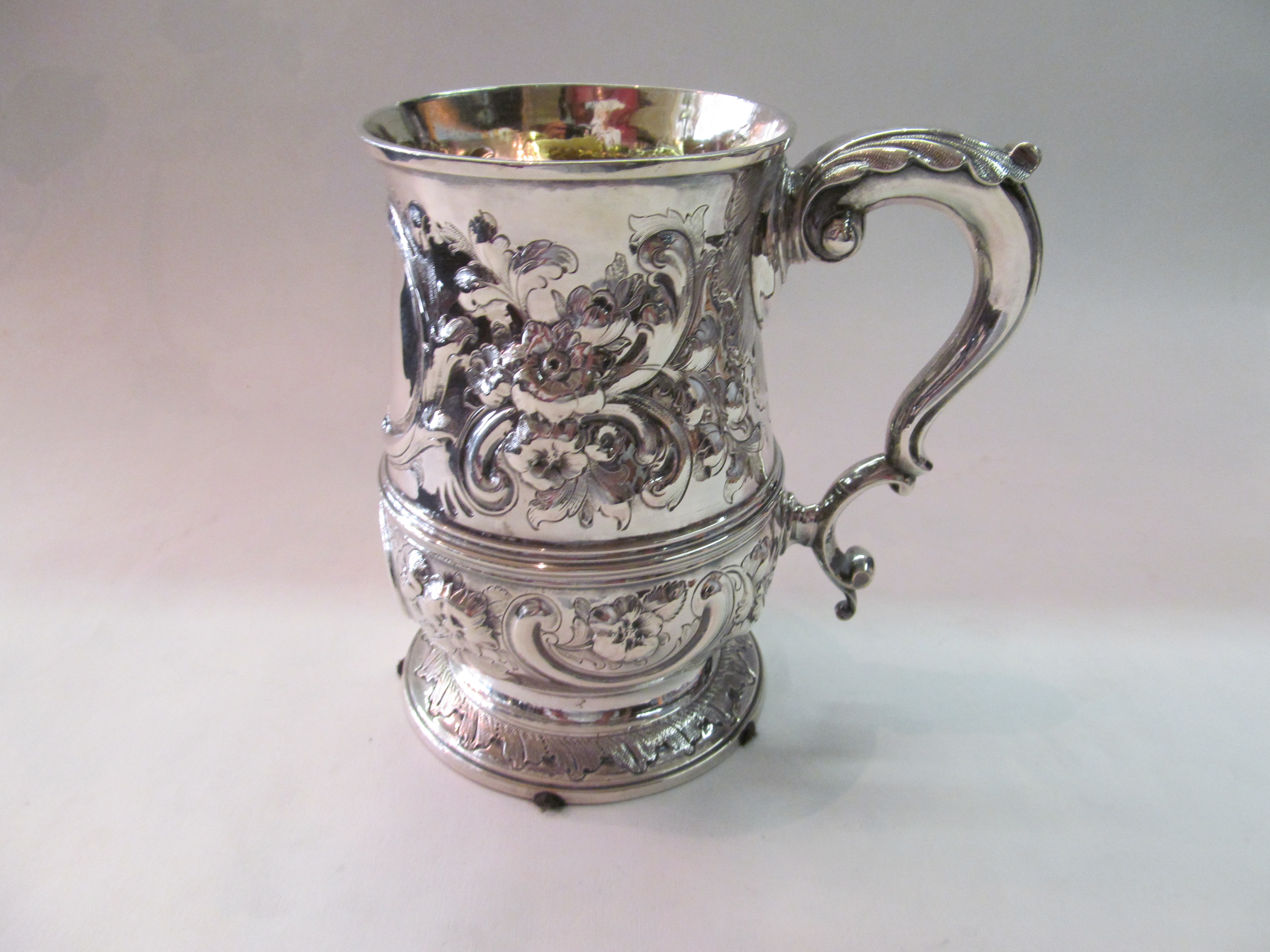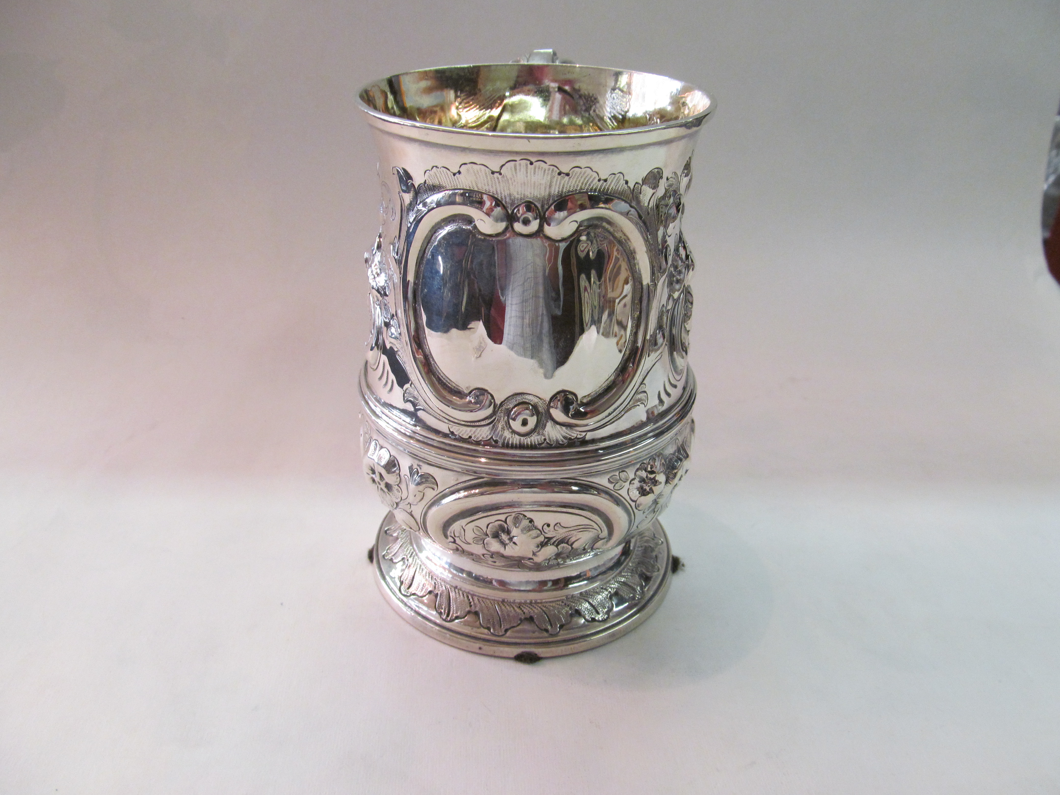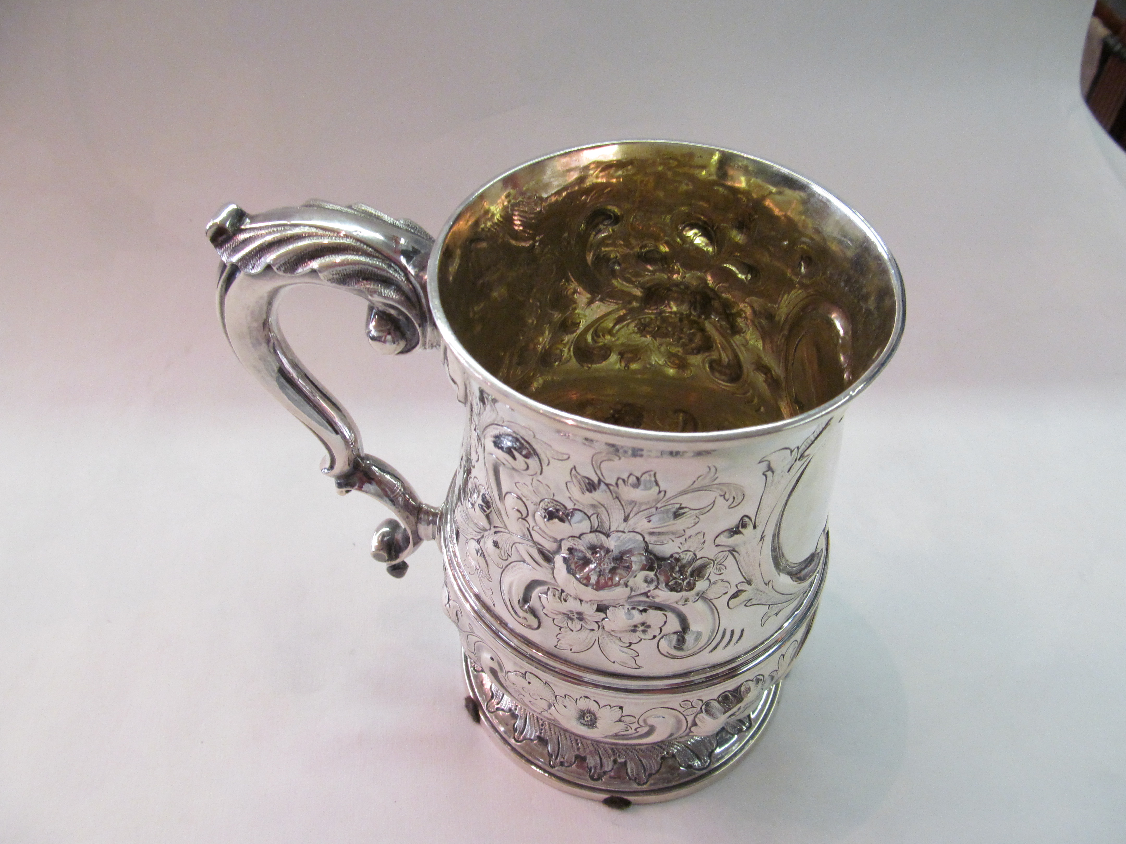 Antique English Sterling Silver Very rare and finely hand chased large tankard.