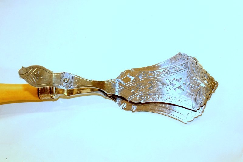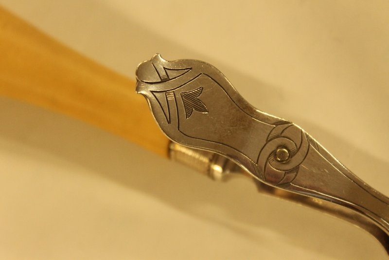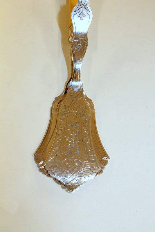 Fabulous Quality Large Ivory Handle Hand Engraved Asparagus Tongs