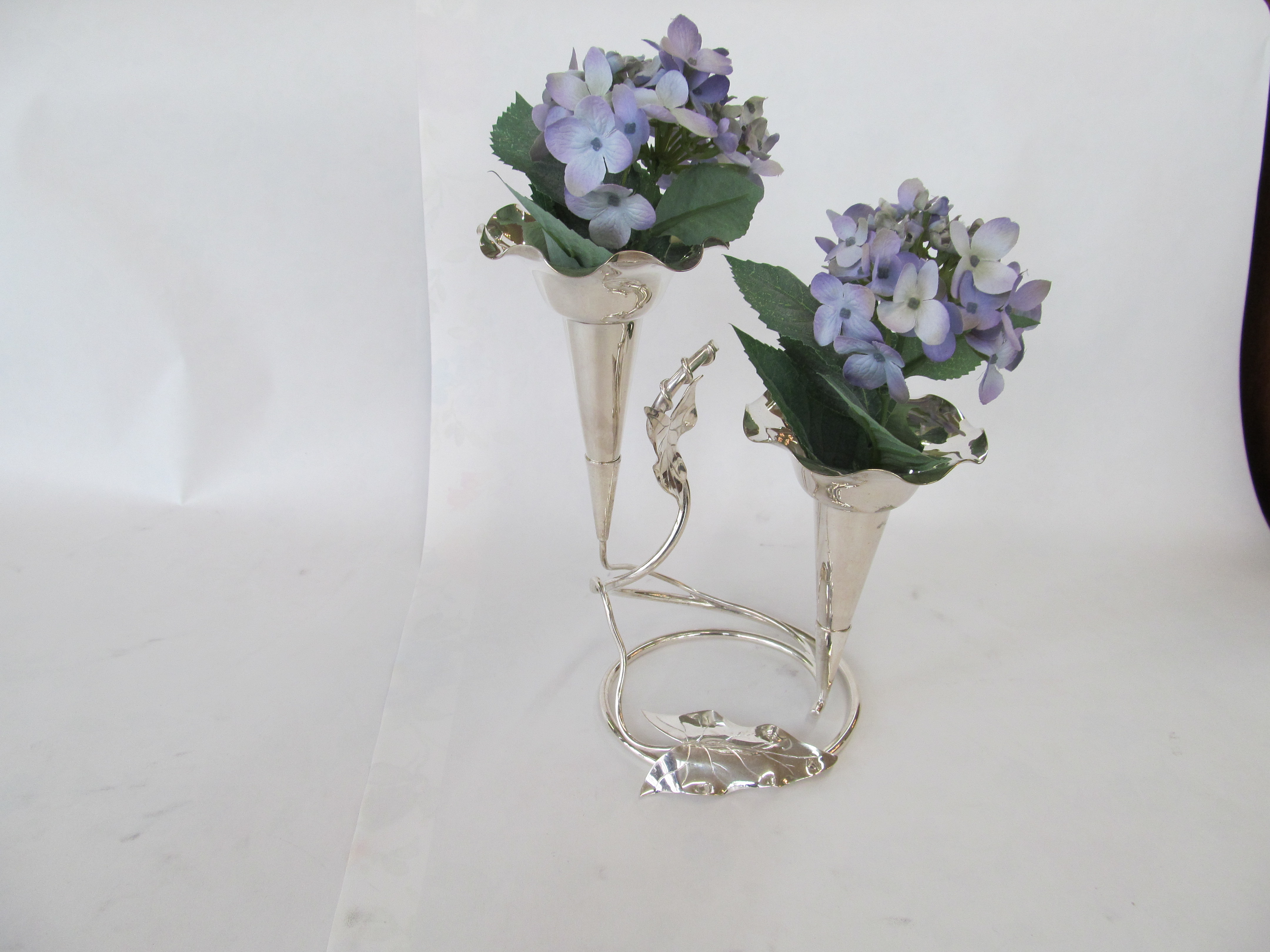 Fine Quality Antique English Silverplate 2-tube Leaf Motif Floral Epergne.