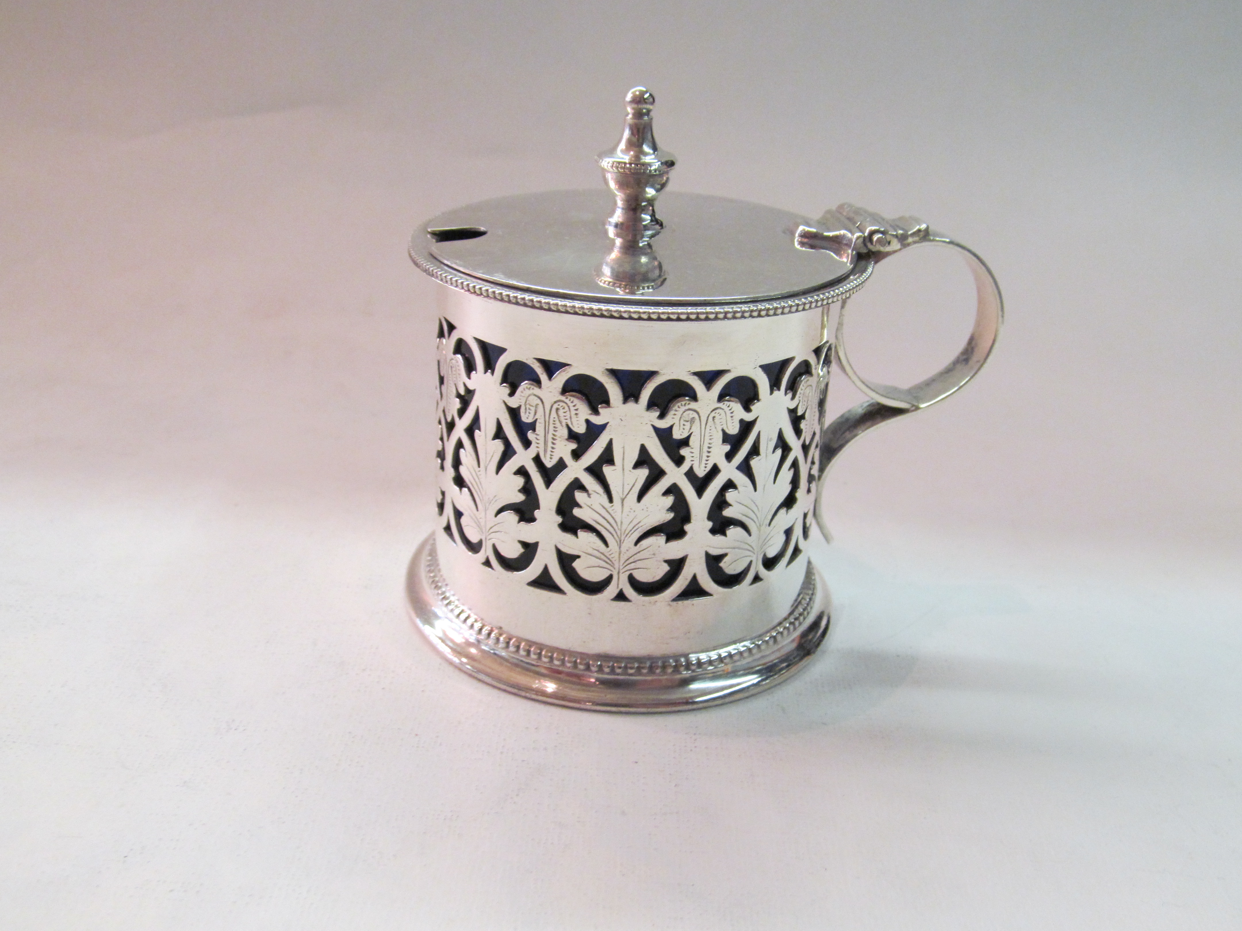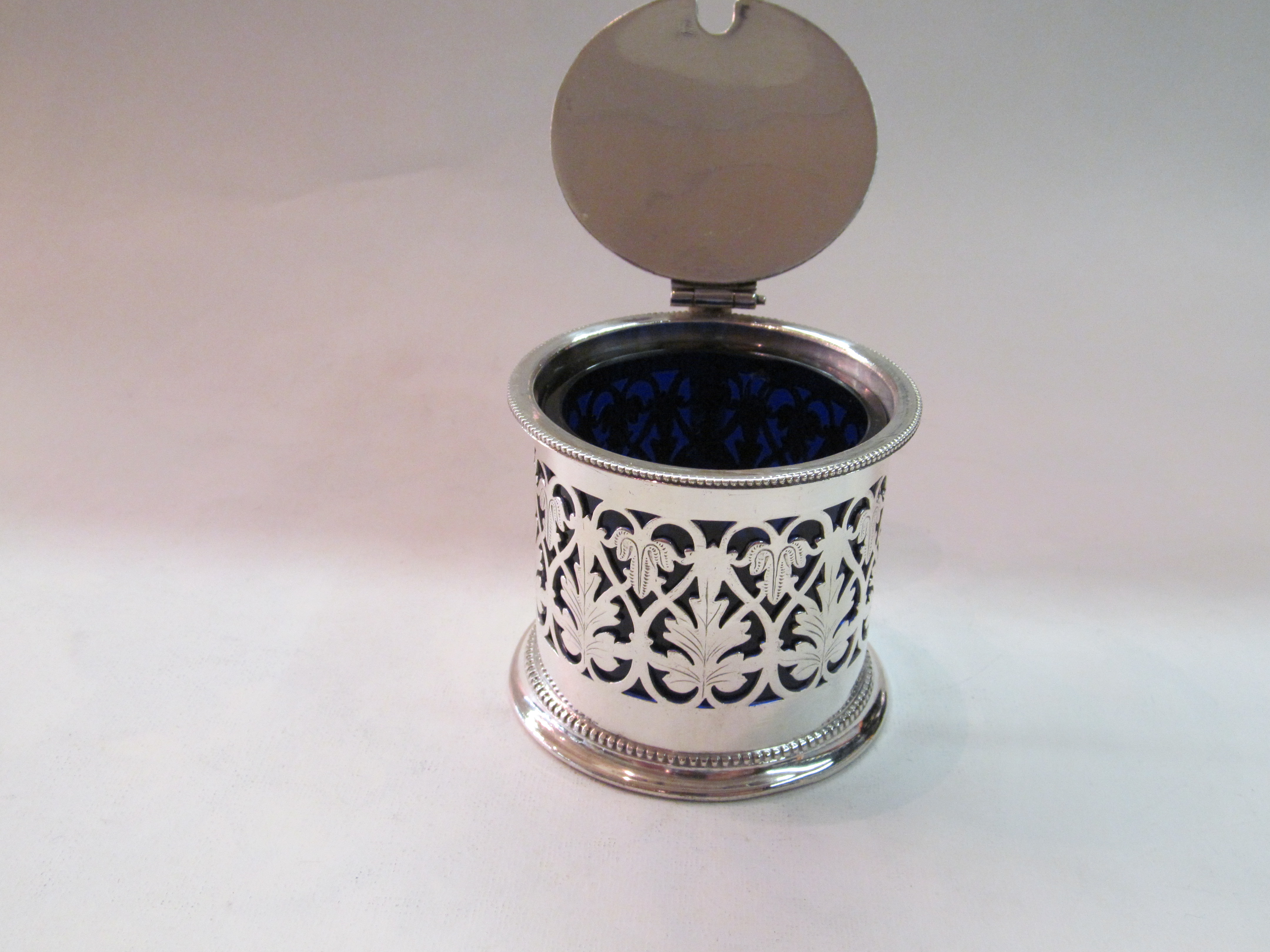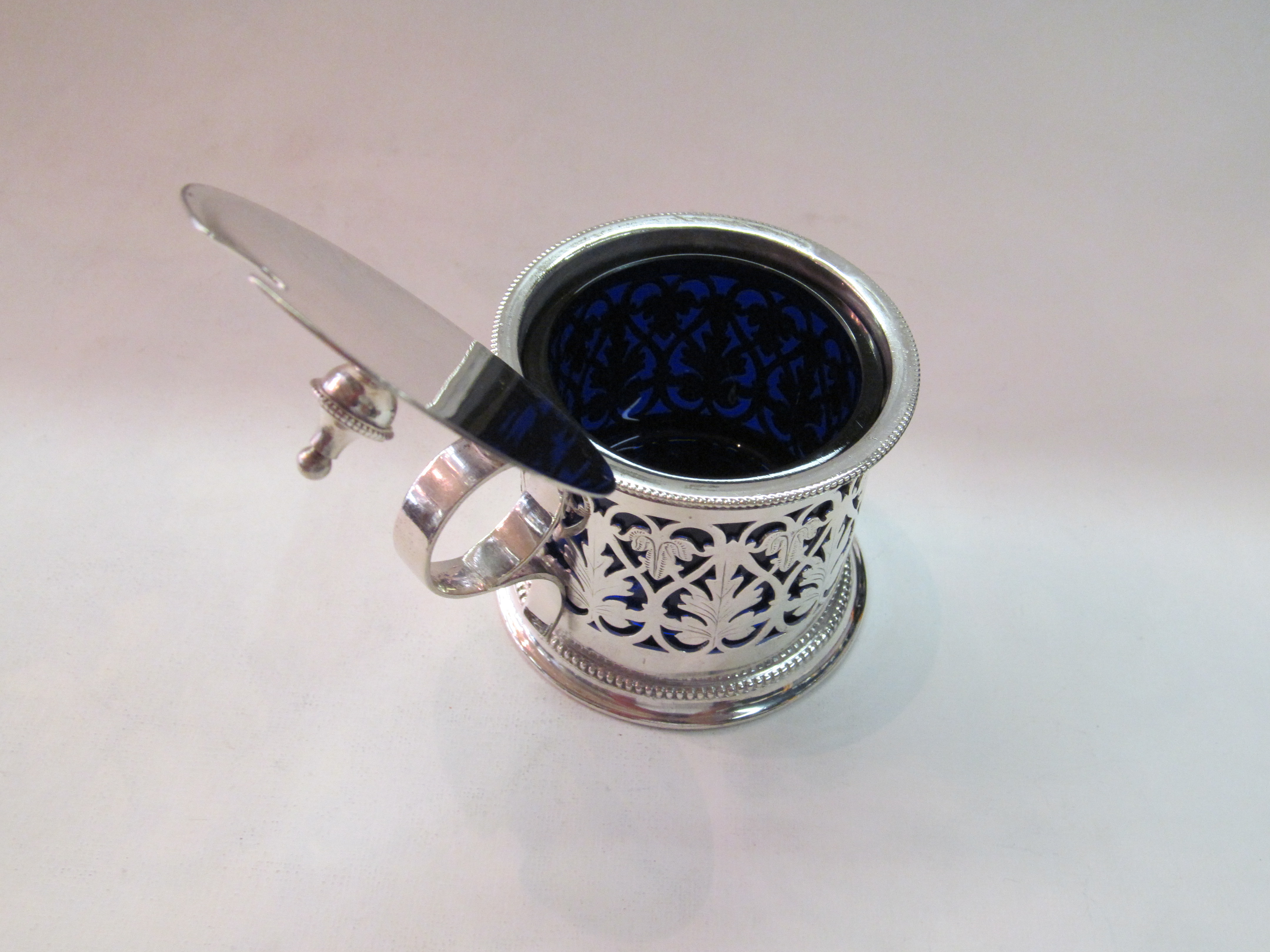 Very Fine Quality Antique English Silverplate Beaded Border and Pierced Body Mustard Pot.