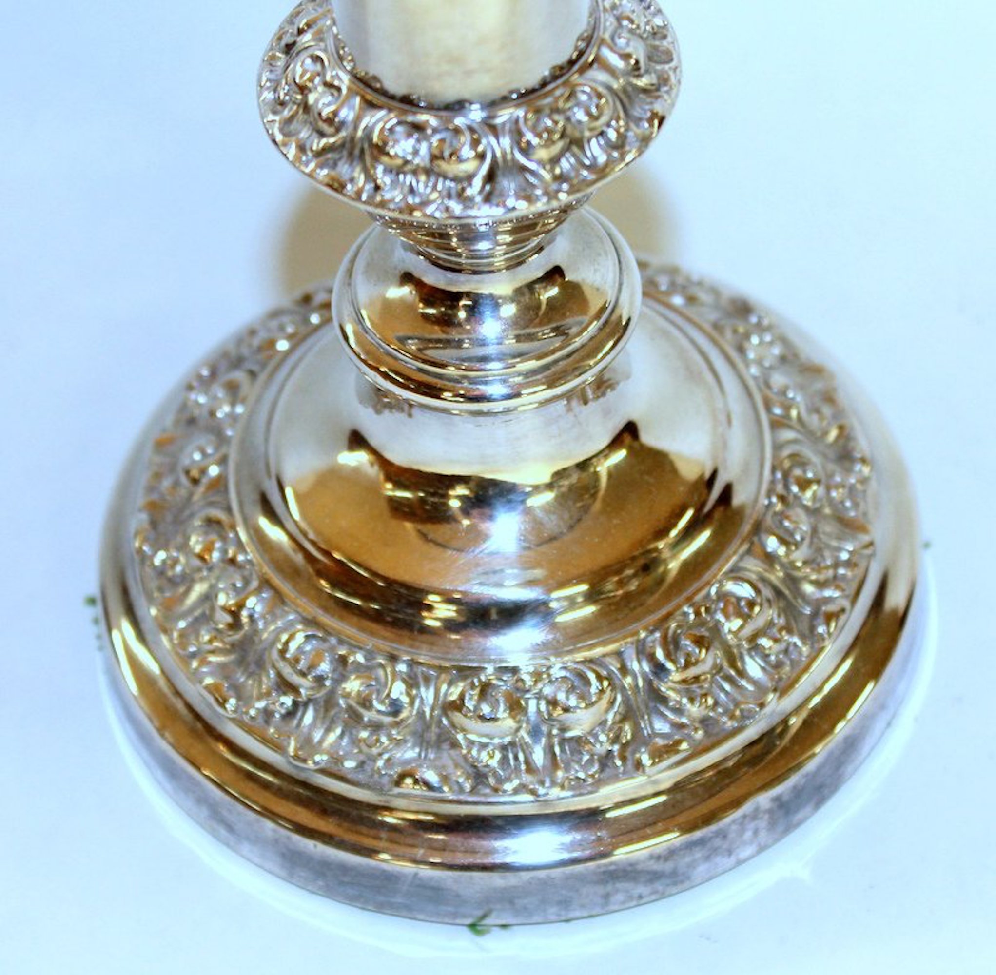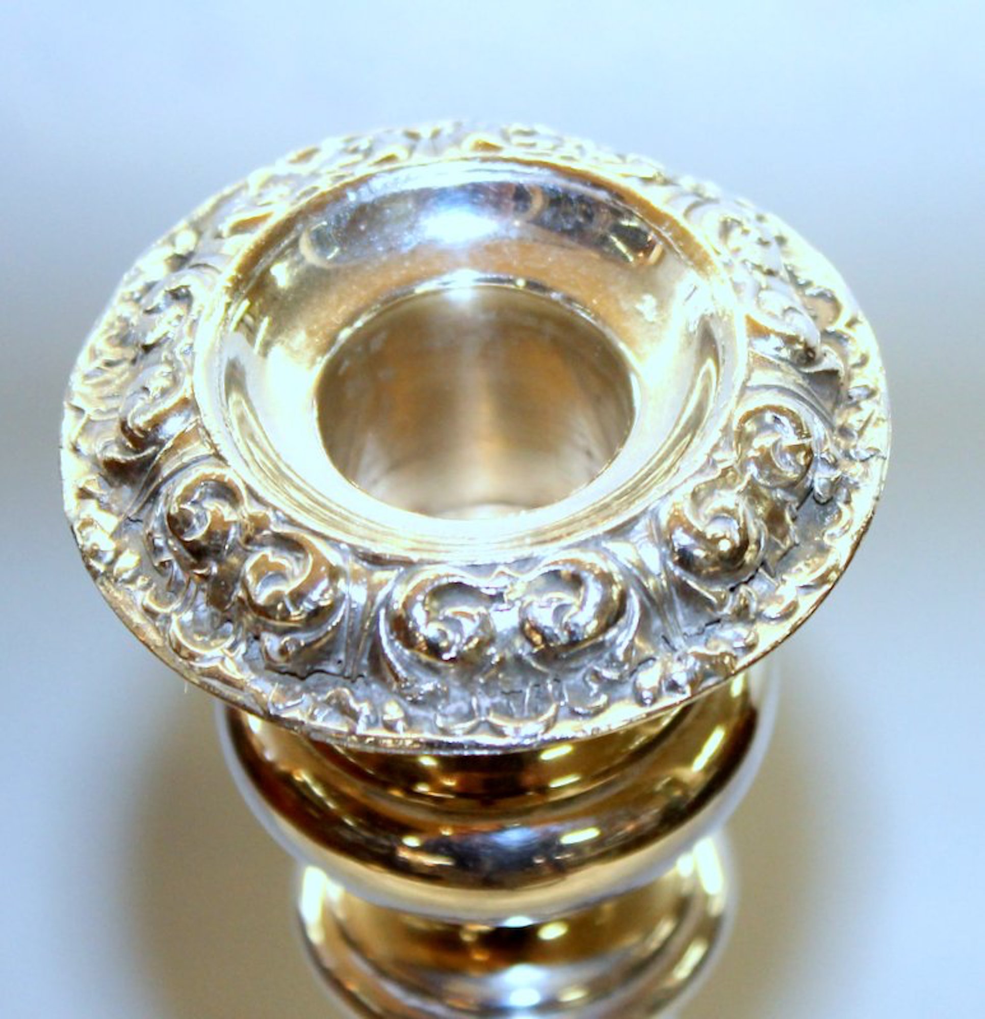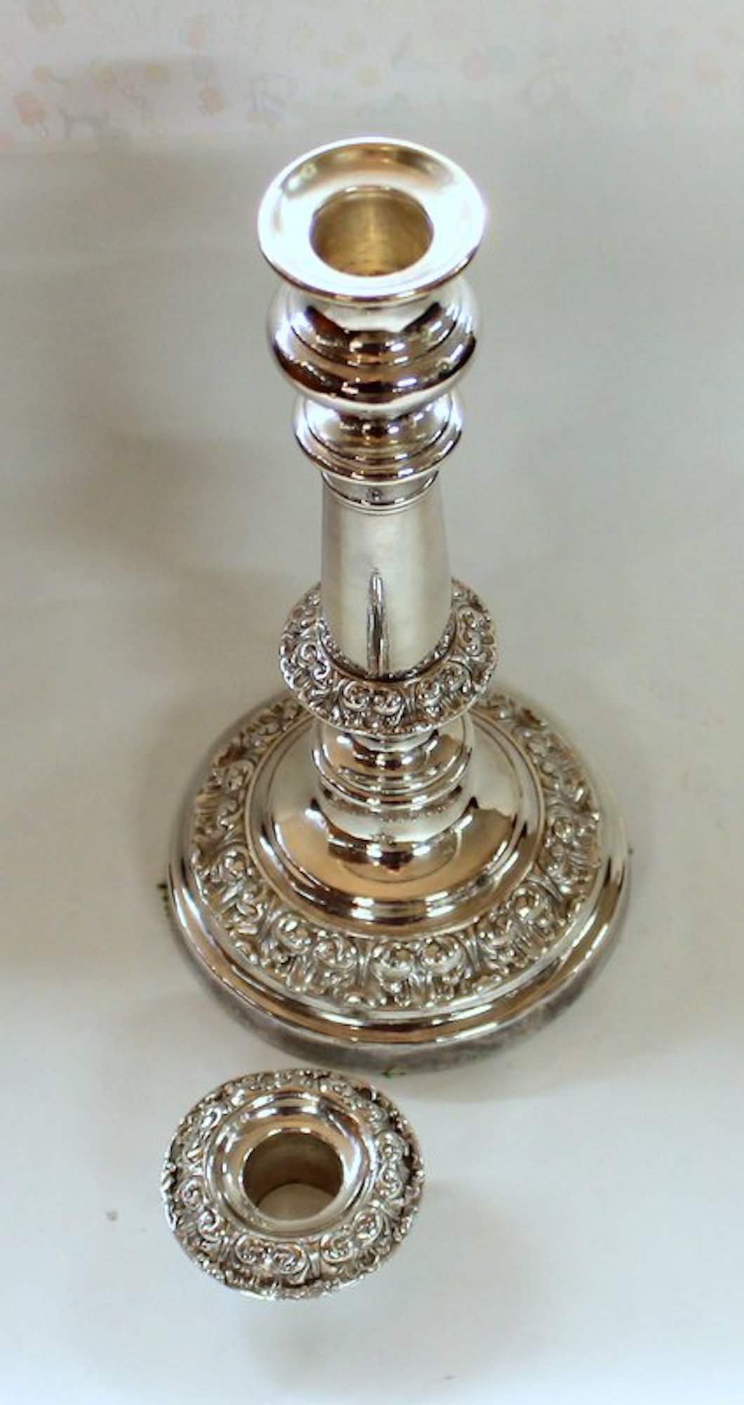 PAIR of Fabulous George IV Rococo Border Round Base Candlesticks