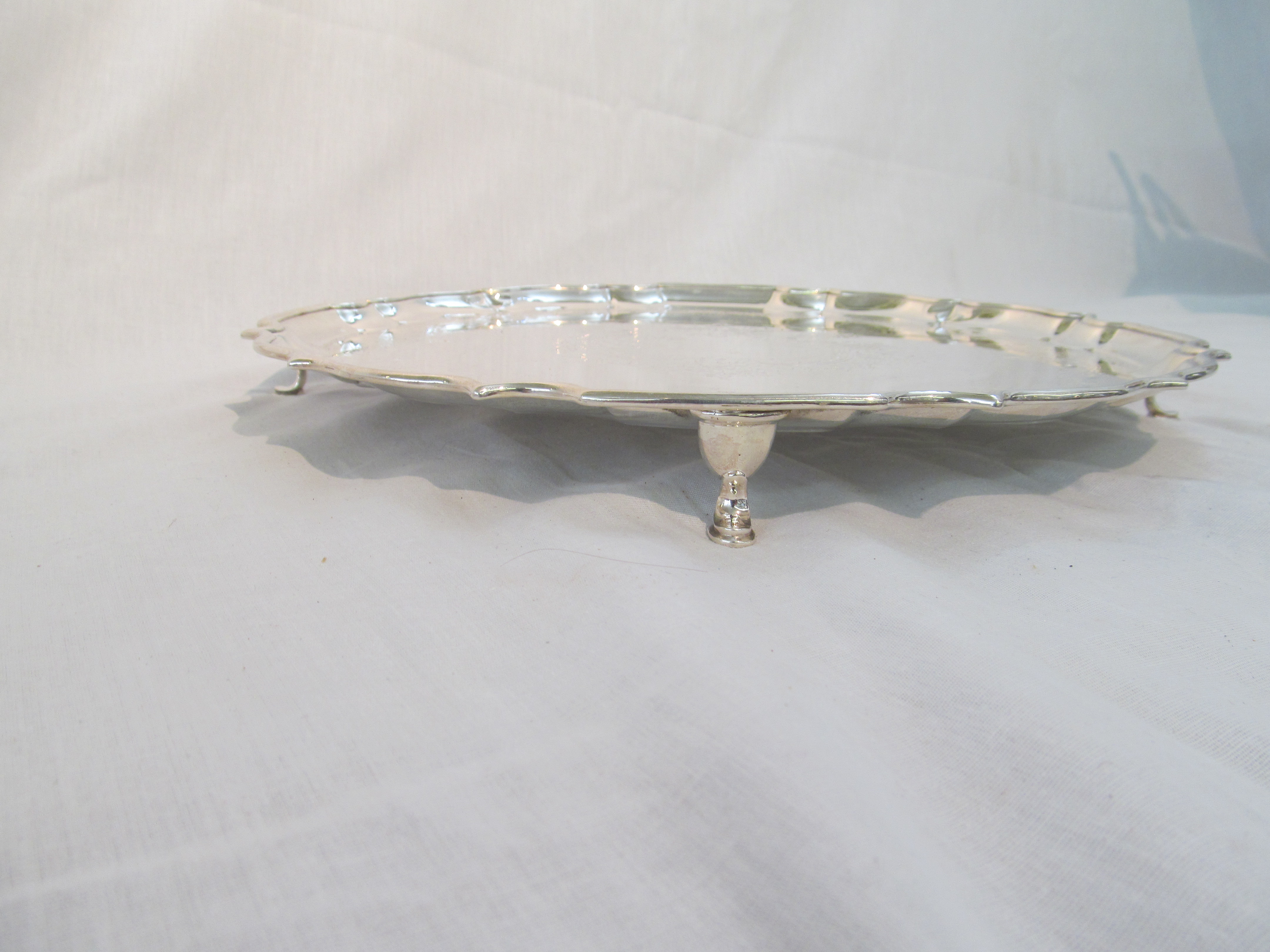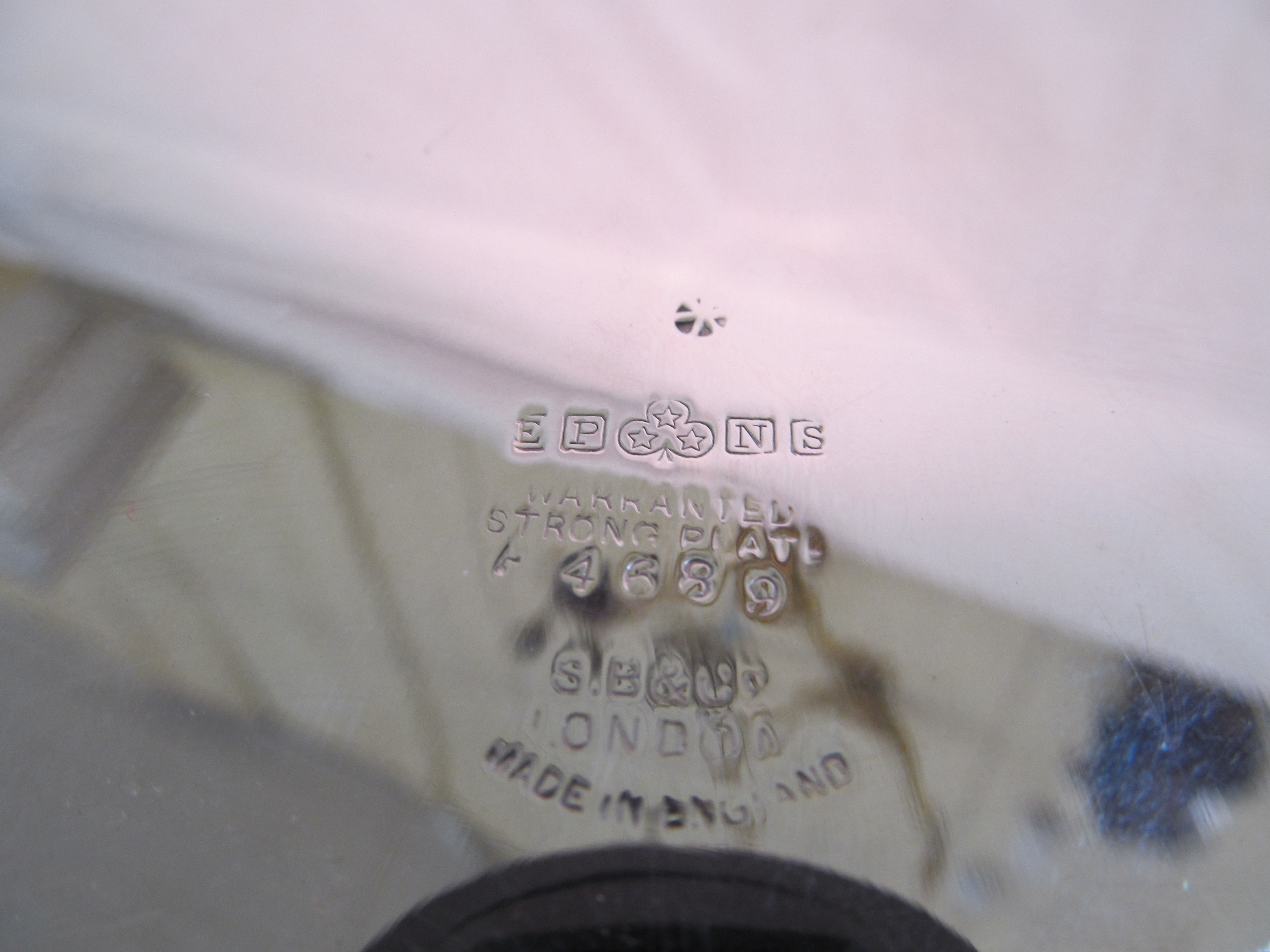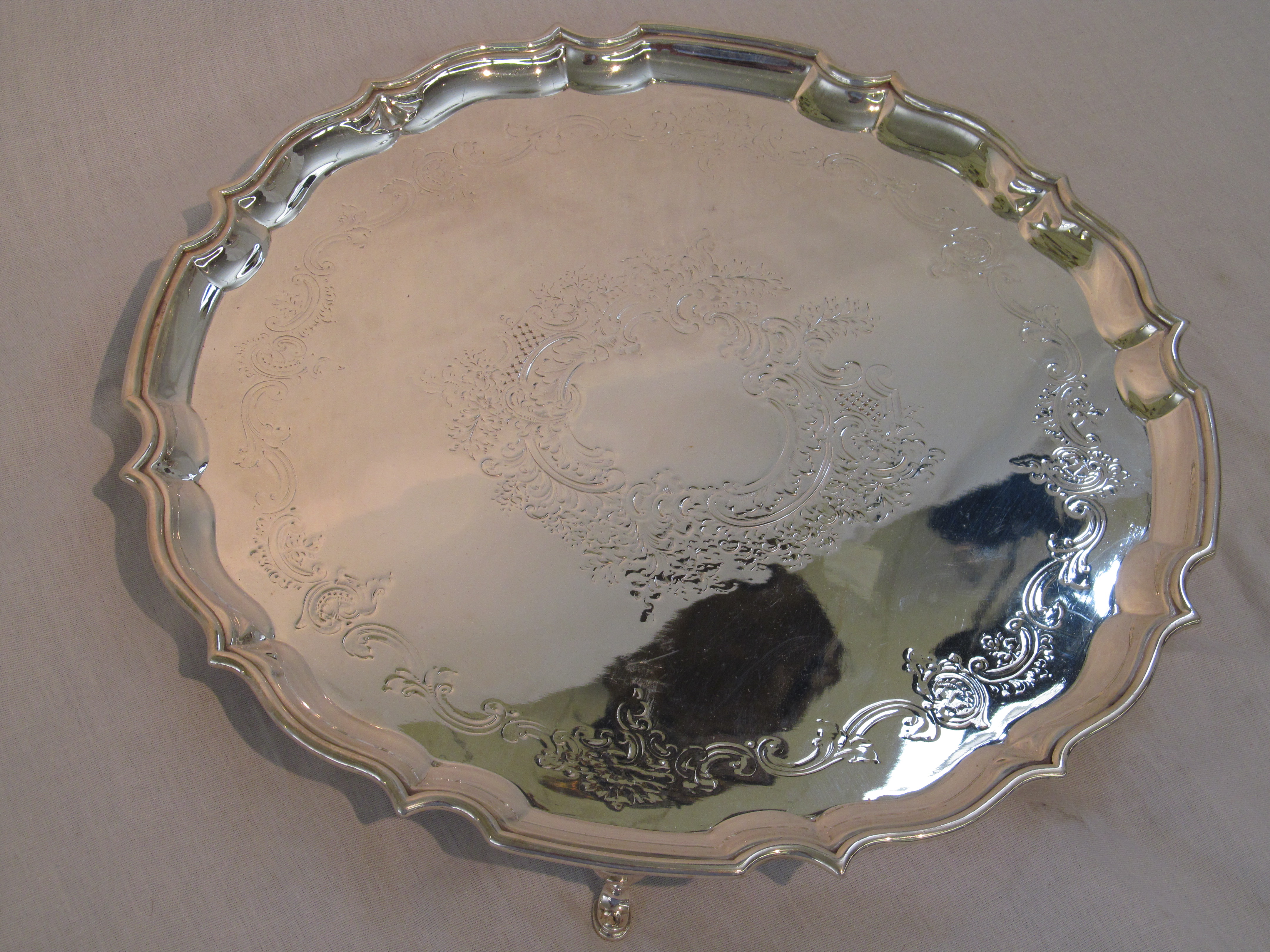 Very Fine Quality Old English Silverplate Pie Crust Border Hand Engraved Footed Salver.