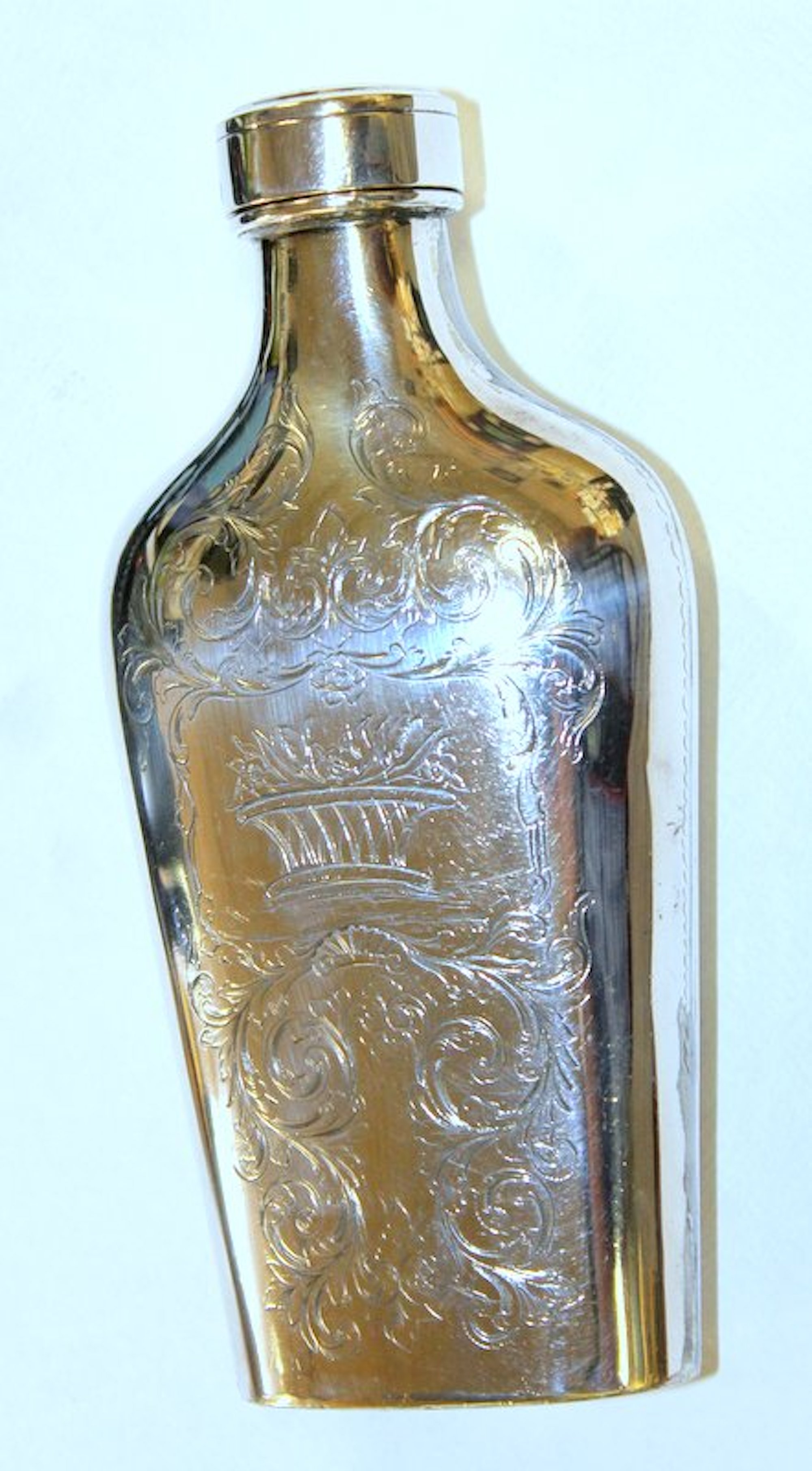 Very Rare Shape Hand Engraved Spirits Flask