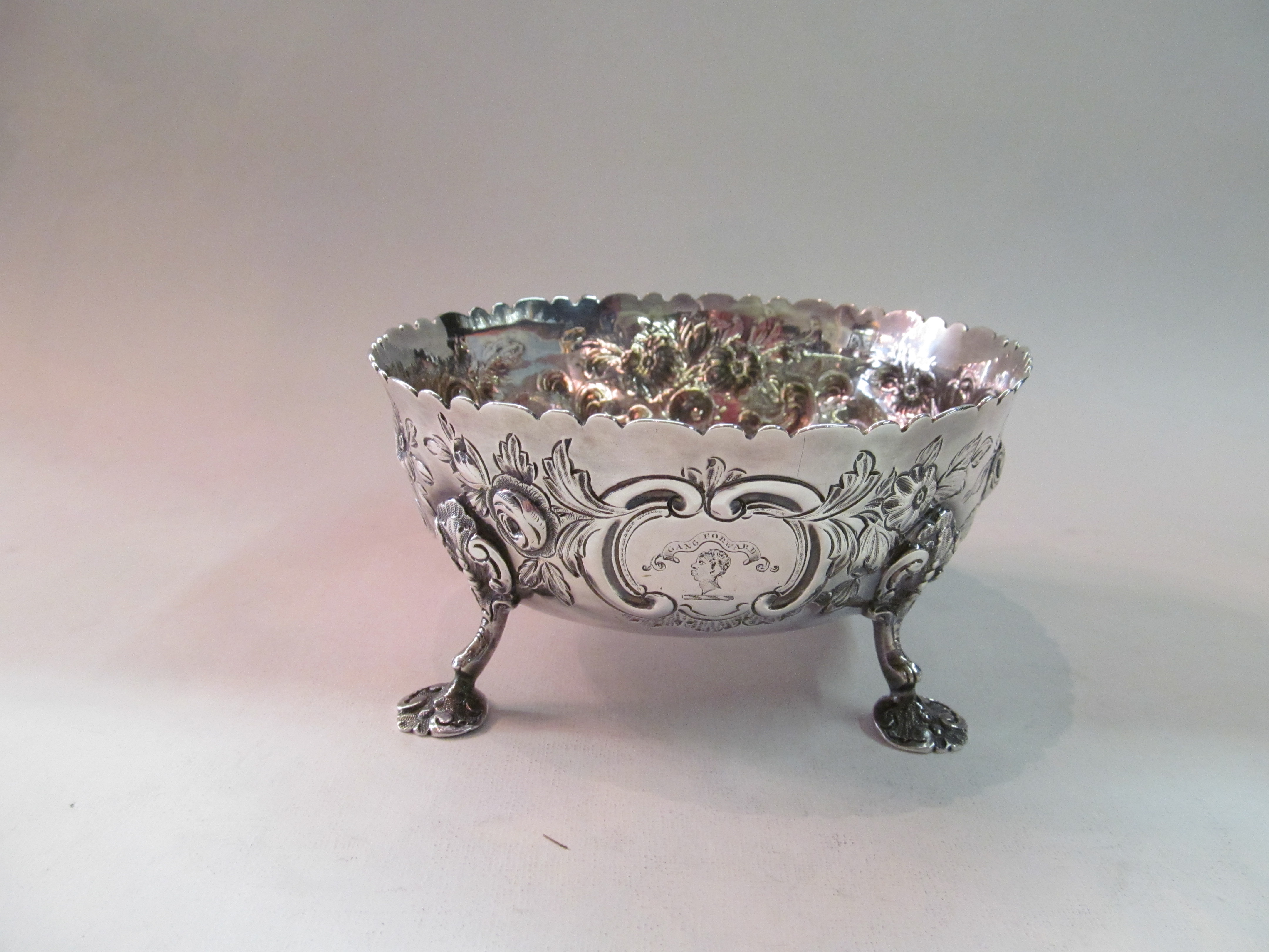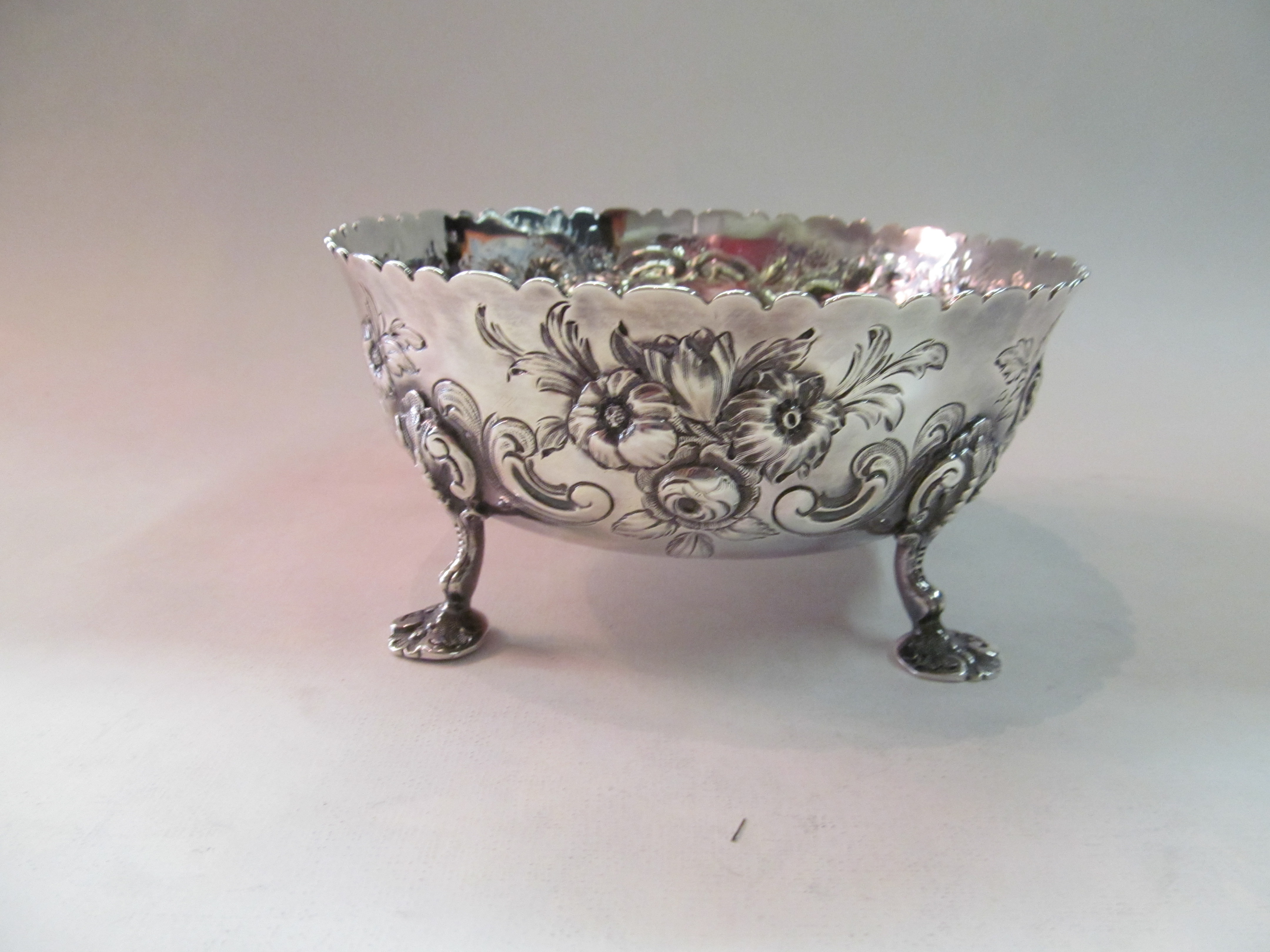Fine English Sterling Silver Hand Chased Round Footed Bowl.