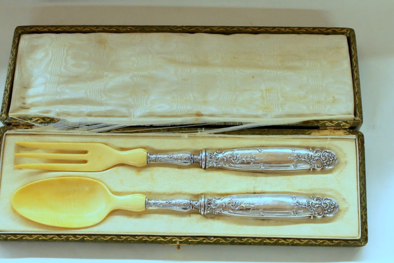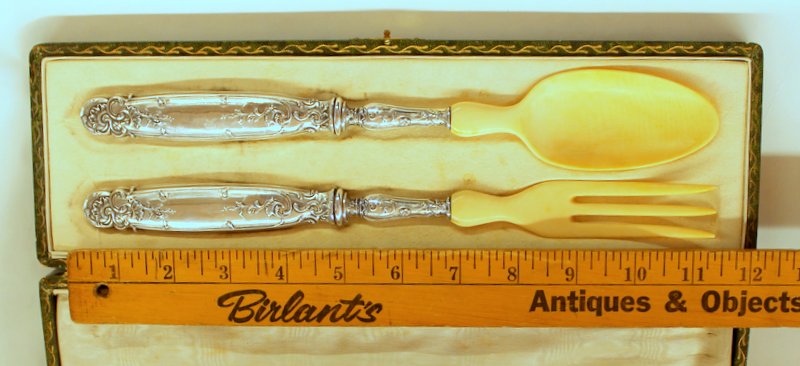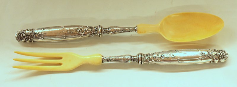 Set of Rare French Ivory and .950 Fine Salad Servers