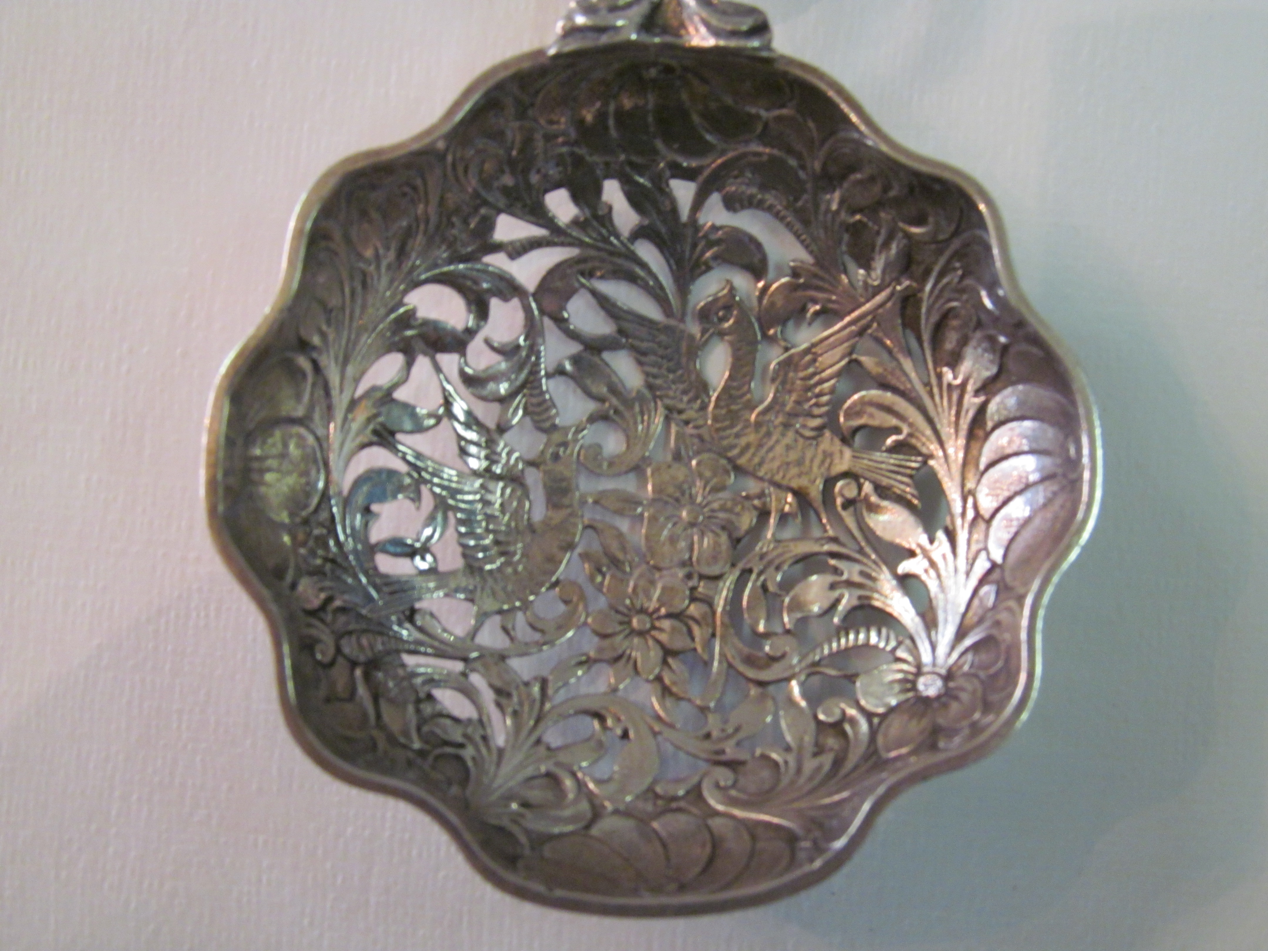 SKU: C-6112-180 Categories: All Inventory, Silver Tags: Antique, Medallion, Silver, Strainer, Tea