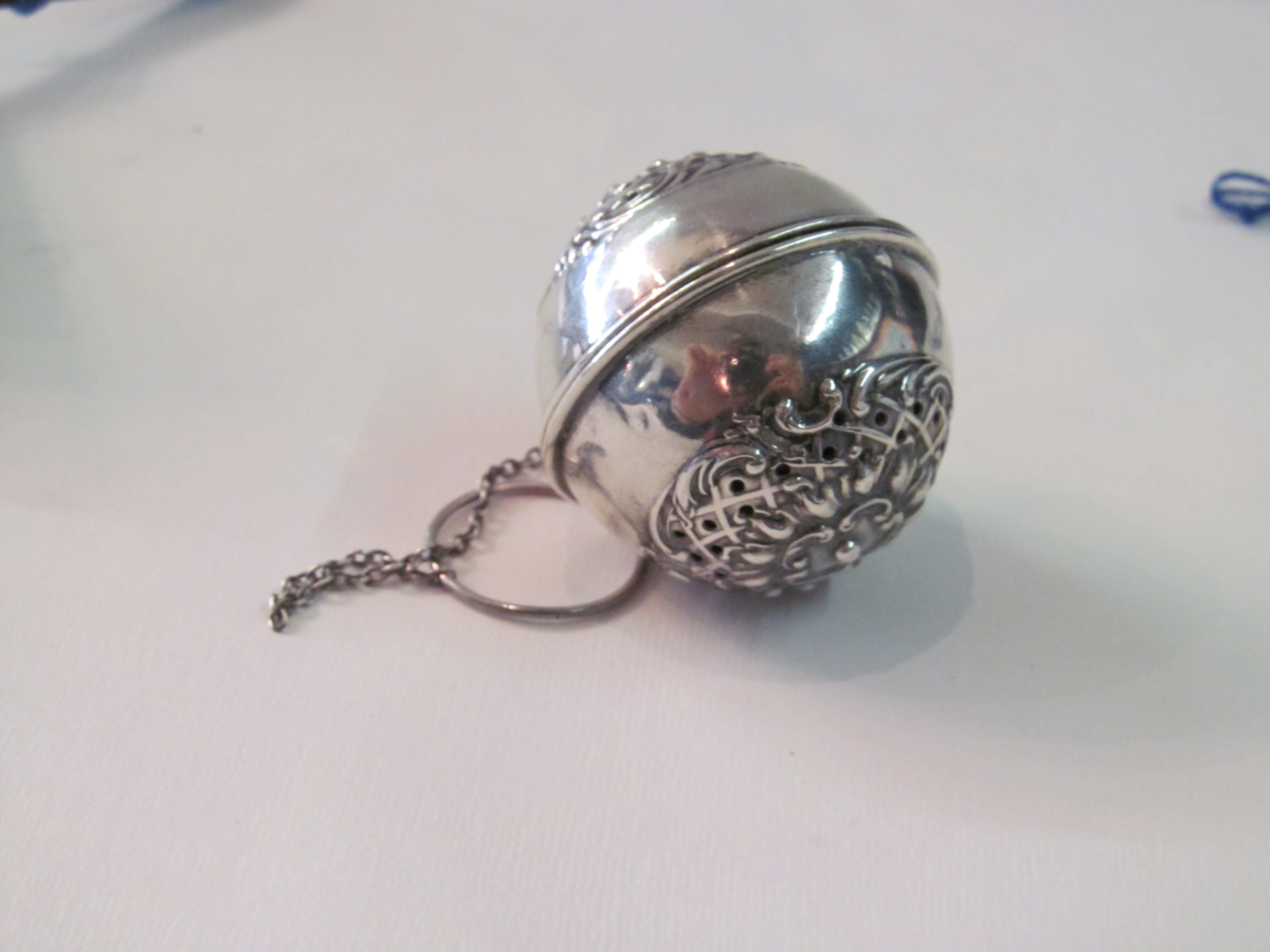 Rare Old American Gorham Sterling large chased Tea Ball.