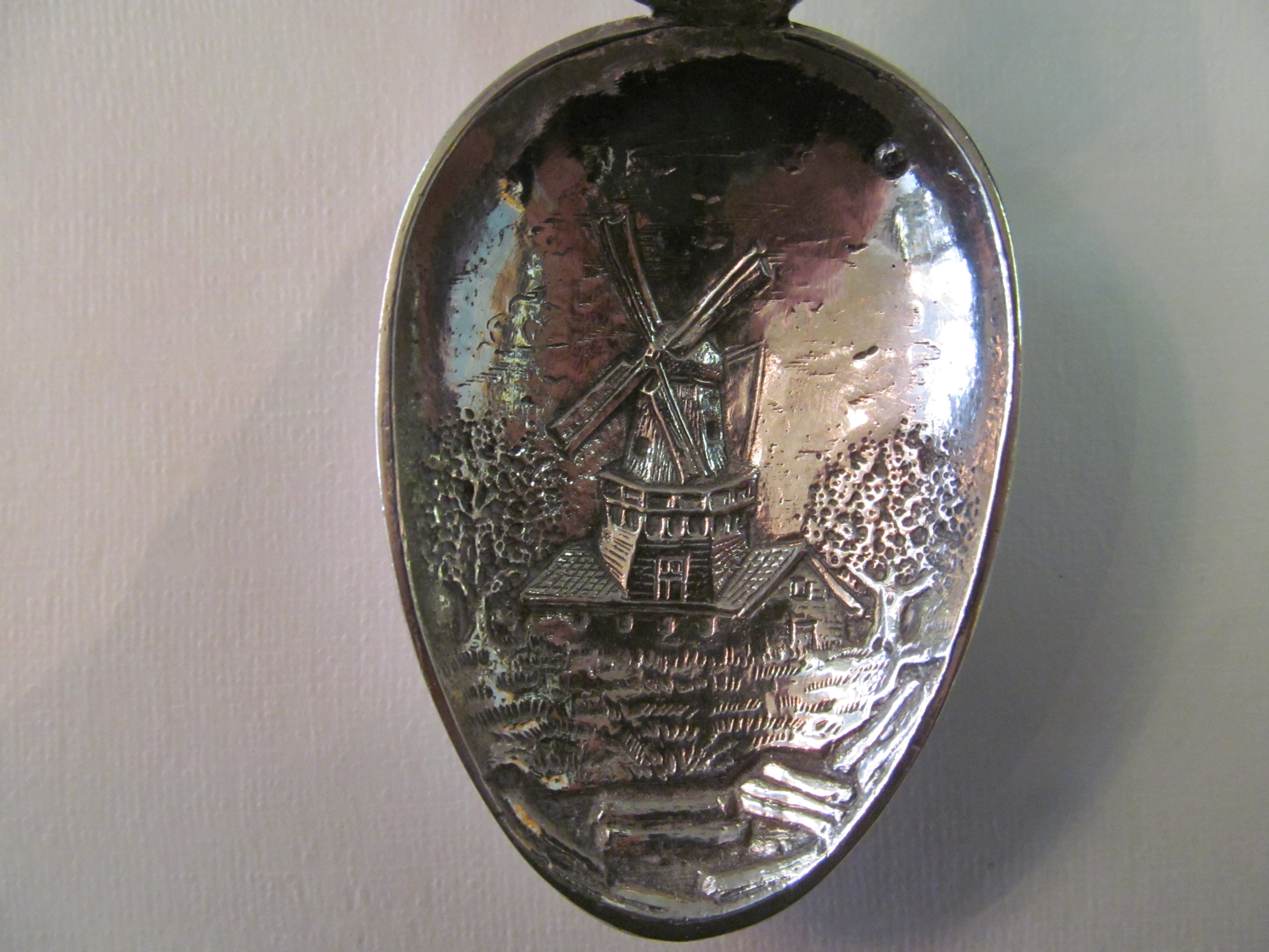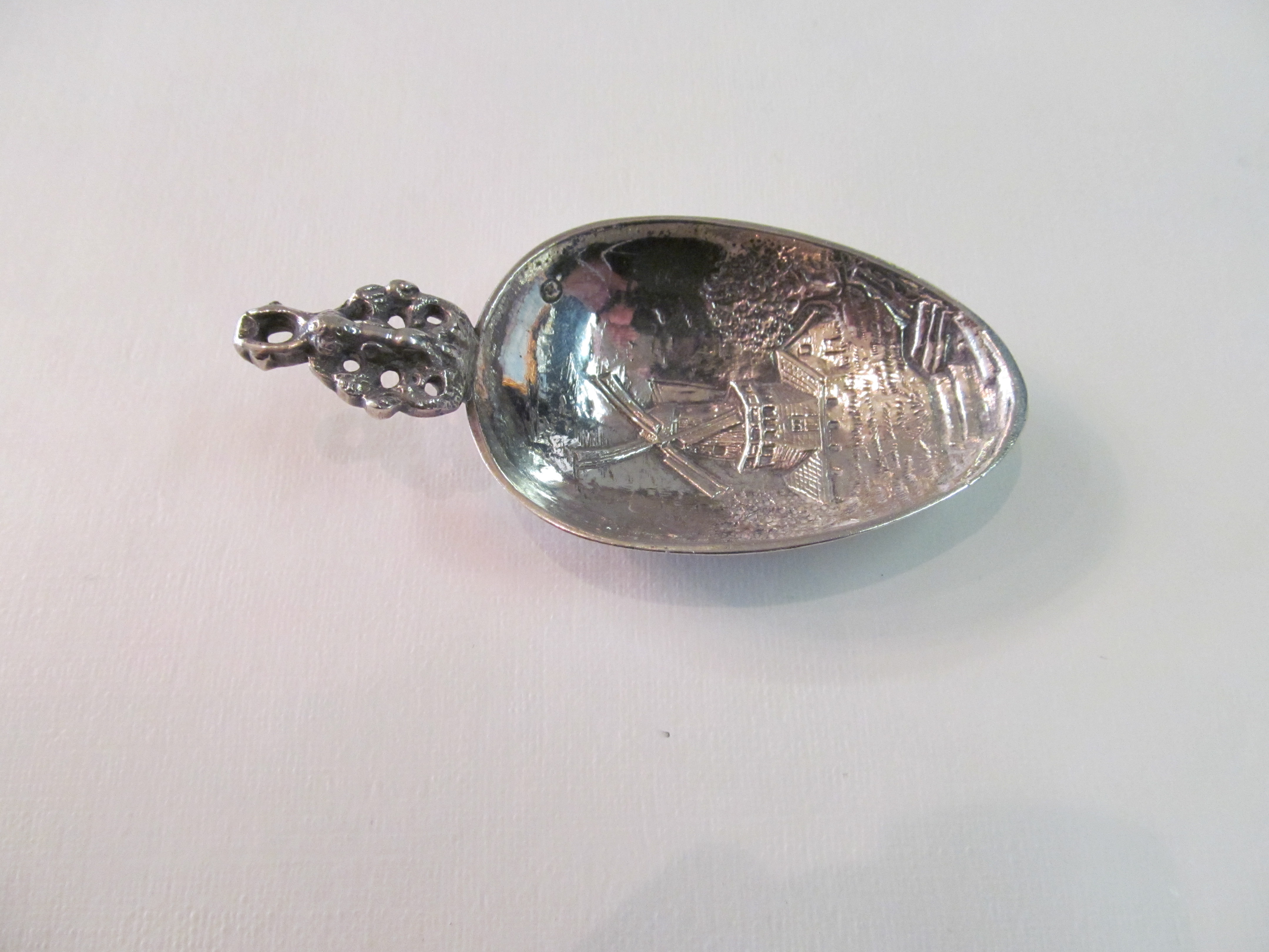 Rare Antique Dutch Silver Windmill Motif Caddy Spoon.